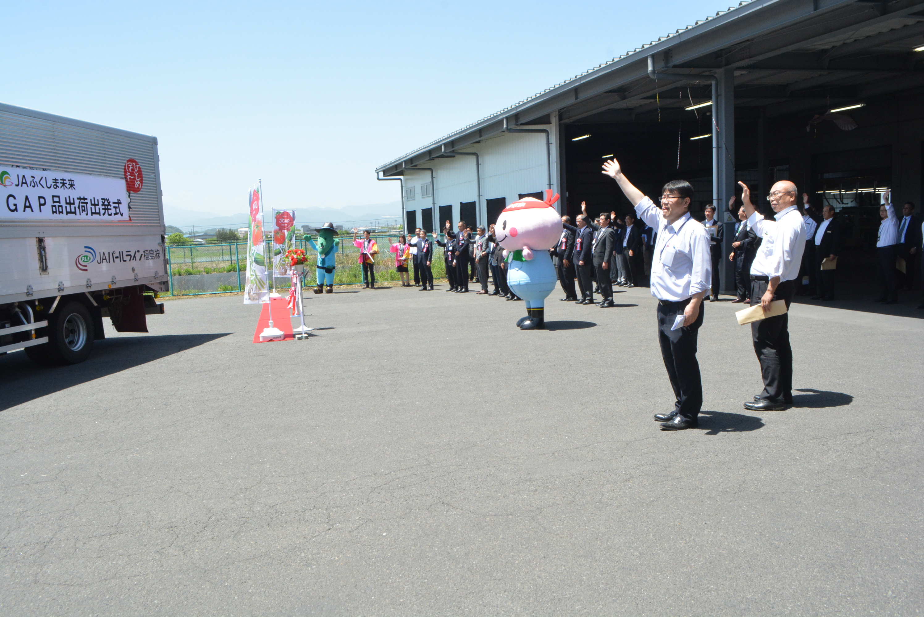 伊達地区東部広域共選場で行った出発式には行政や市場関係、JA役職員など約70人が出席しました。