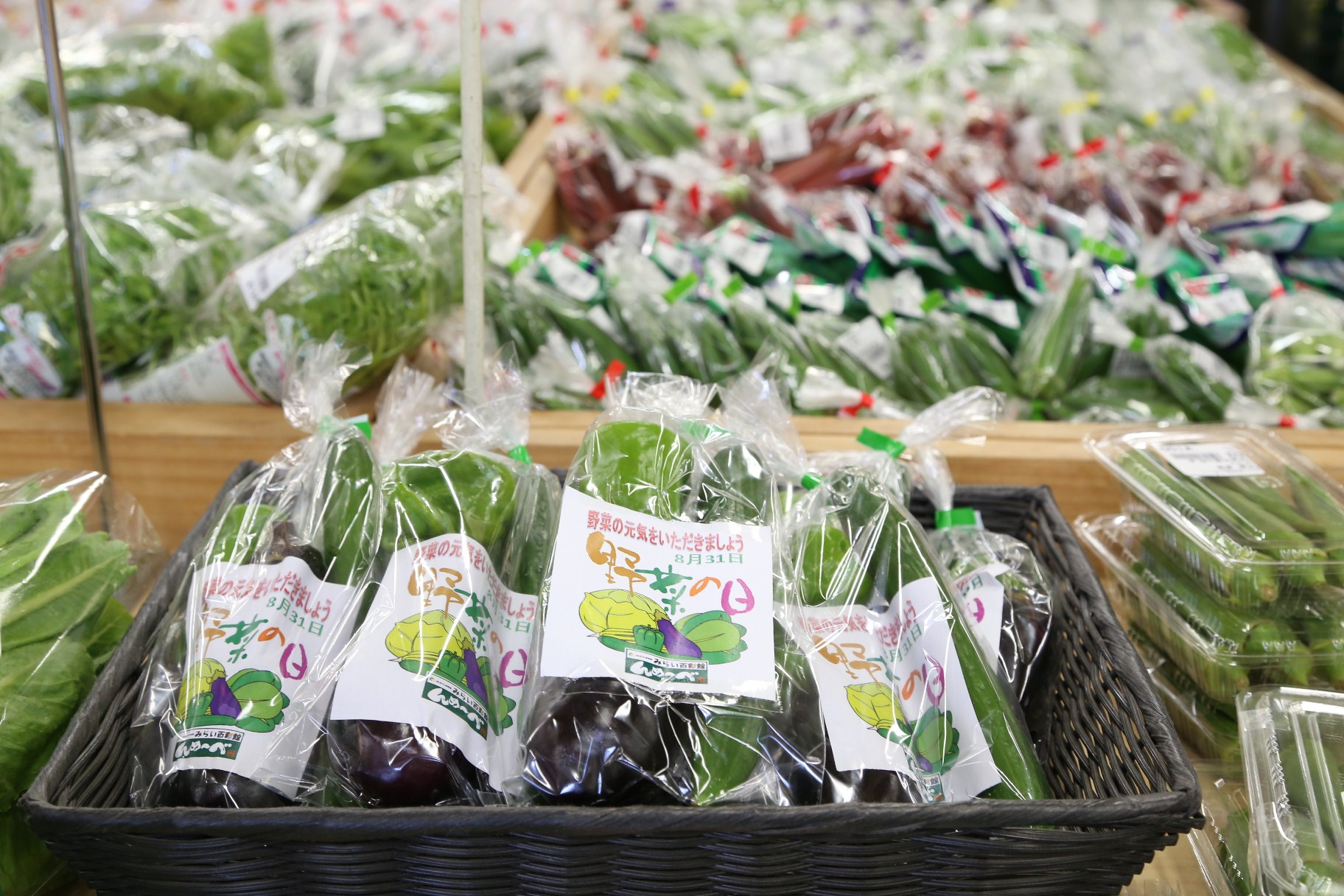 伊達地区のみらい百彩館「んめ~べ」では、レジ通過のお客様先着100人に、キュウリ、ピーマン、ナスの詰め合わせセットをプレゼントして「やさいの日」をアピール。お客様に対する日ごろのご愛顧に感謝しました。