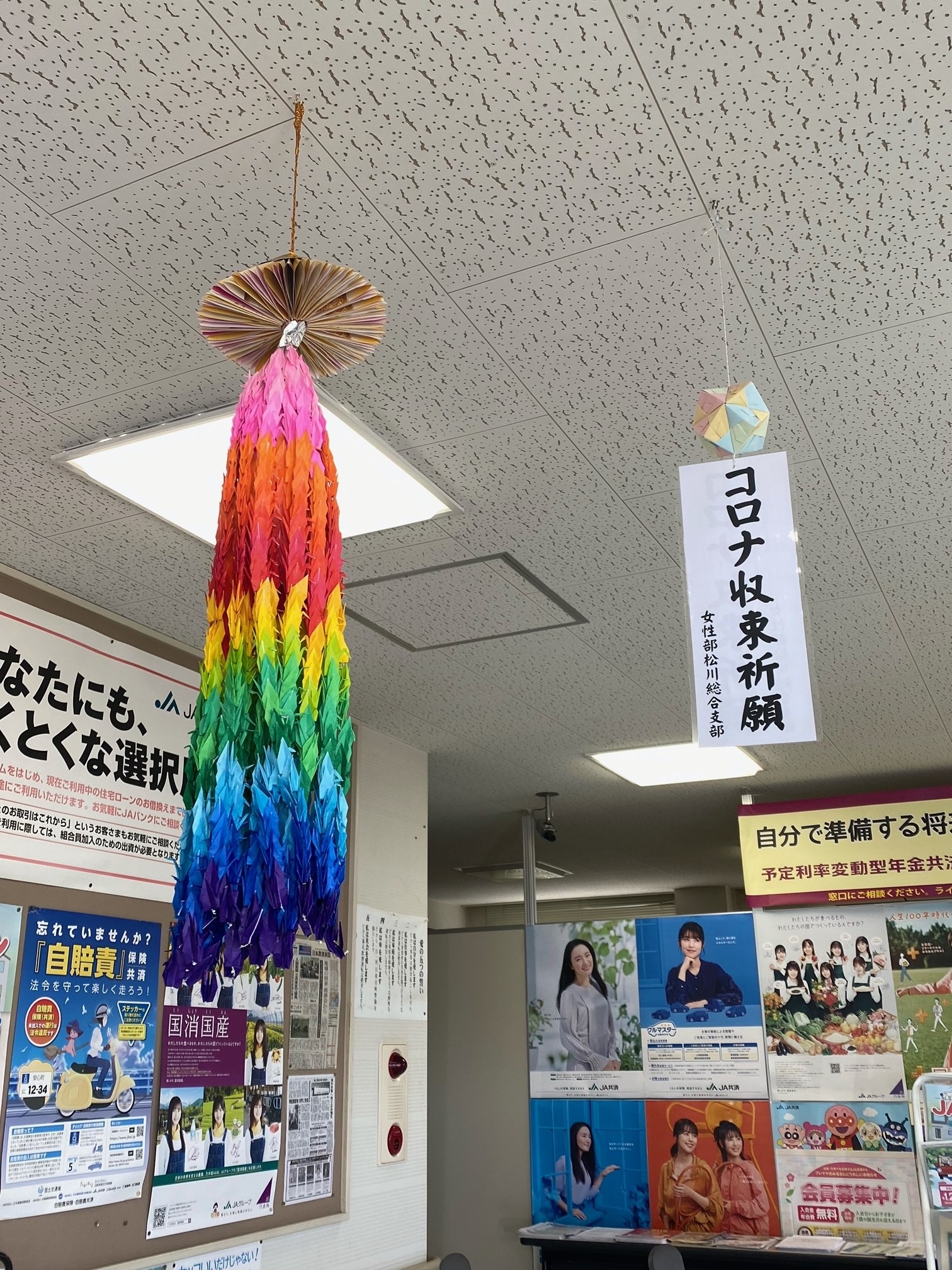 当JA女性部松川総合支部は、新型コロナウイルス感染症収束を願い千羽鶴を制作し、松川支店へ贈呈しました。