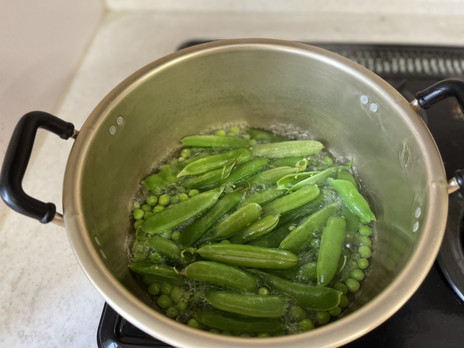 参加した受講生は「グリーンピースのサヤも一緒に茹でて、ゆで汁を炊飯に使用したのが勉強になった」と話しました。調理したものは、各自持ち帰り試食しました。
