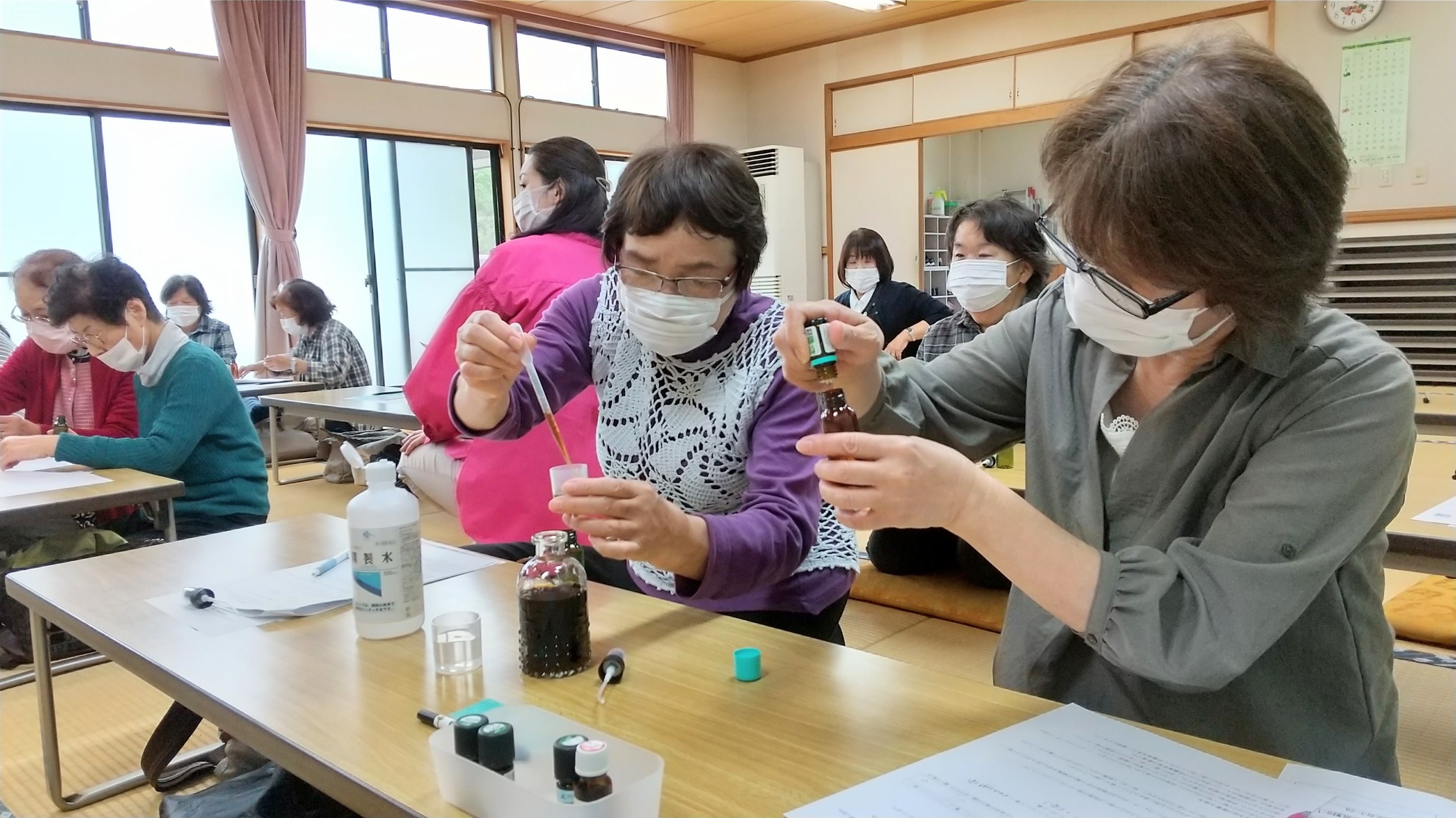 JAふくしま未来女性部堰本支部は15日、伊達市にある同JAの堰本支店でアロマ教室を開催しました。講師にアロマ&ポーセラーツサロンイリスの小泉佳奈子さんを招き、部員18人が参加しました。
