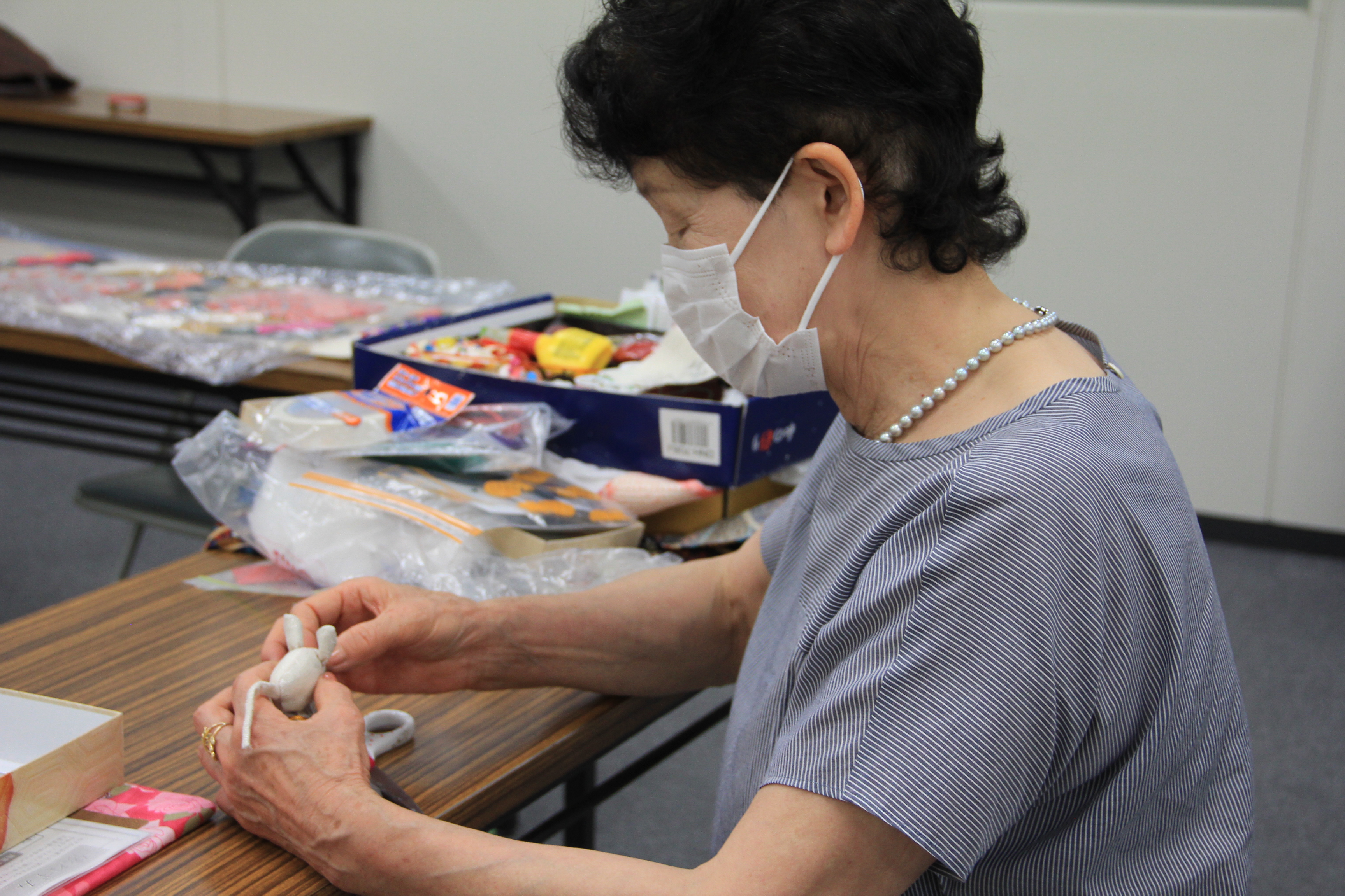 今年度初の同教室では、講師に大塚悦子さんをお呼びし、「俵ねずみ」を作成しました。会員らは世間話をしながら楽しく作業しました。会員の中には、震災後、気持ちが暗くなっていたが、同教室を開いたことで気持ちが前向きになった会員もいました。大塚さんは「この活動を続け、コミュニケーションをとっていくことが何よりも大切」と話しました。
