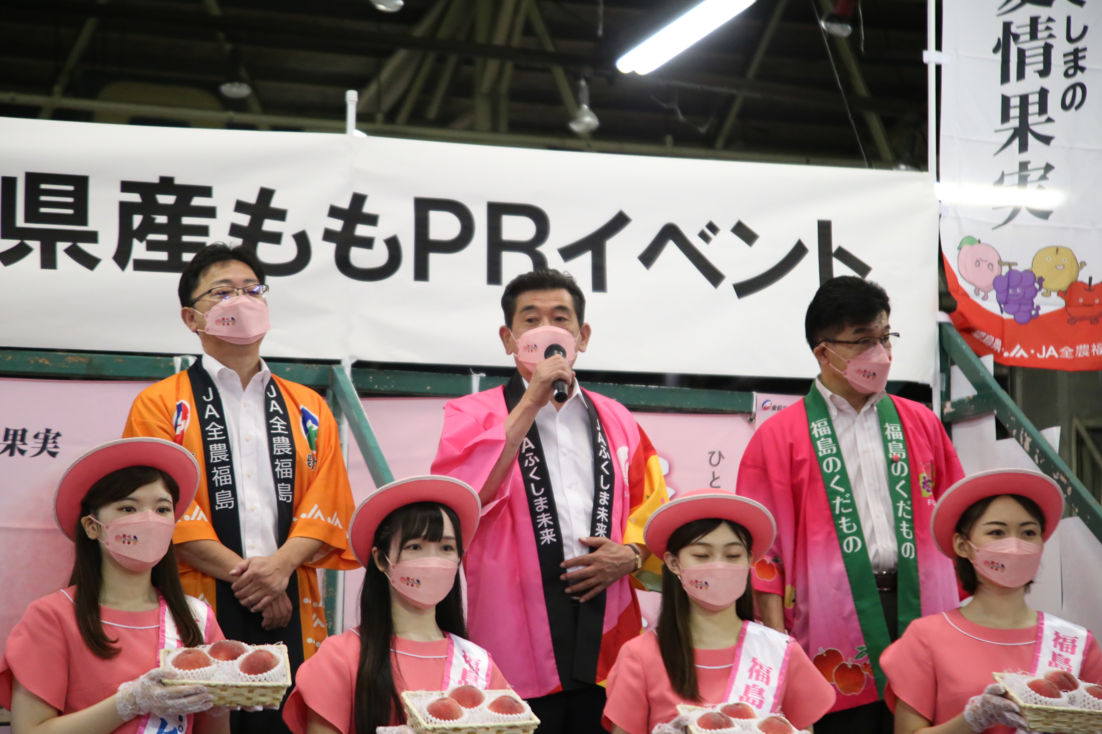 JA全農福島の金成広之県副本部長は「甘みが強く良い仕上がり。今年のモモは最高だ。」とPRしました。