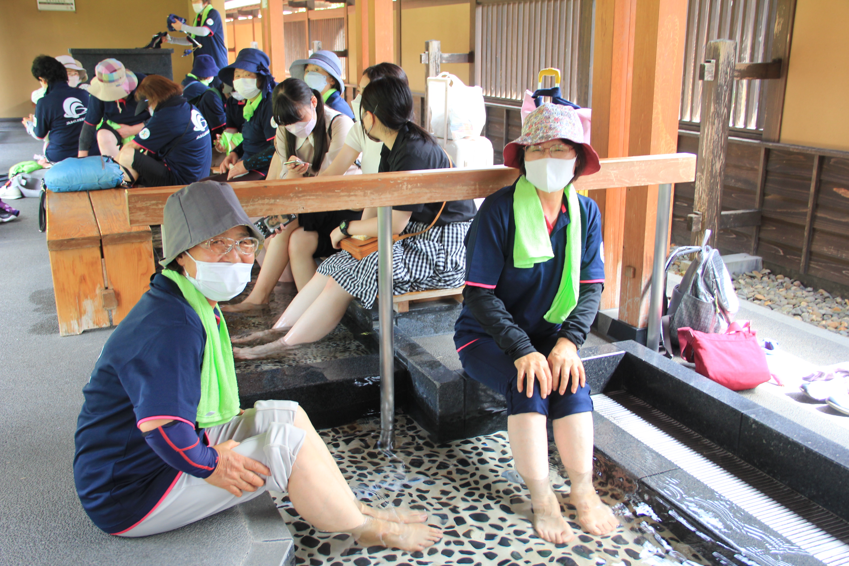 部員らは、中継地点での旧堀切邸で足湯や手湯を満喫し、飯坂名物の「けしまんぢう」を受け取りました。参加した部員は「昨年はコロナ禍で中止になってしまって残念だった。今年のウォーキング大会はずっと楽しみにしてきた」と開催を喜びました。