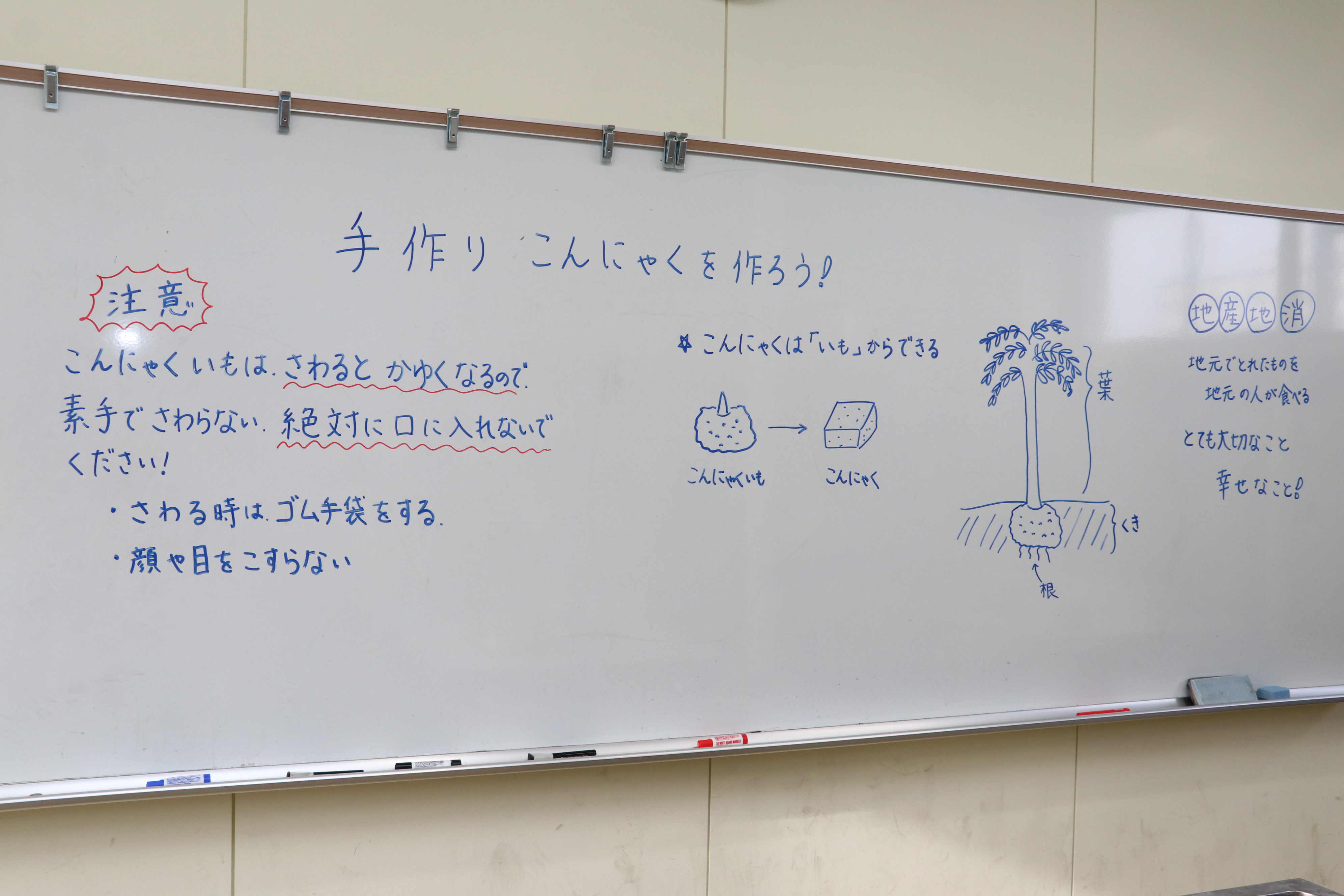 当JA福島地区は24日、福島市立荒井小学校でこんにゃく作り体験教室を開催しました。地元のこんにゃく農家が、地産地消教育として小学校を訪問し手作りこんにゃくの作り方を教え、児童たちに食と農の関わりを伝えました。