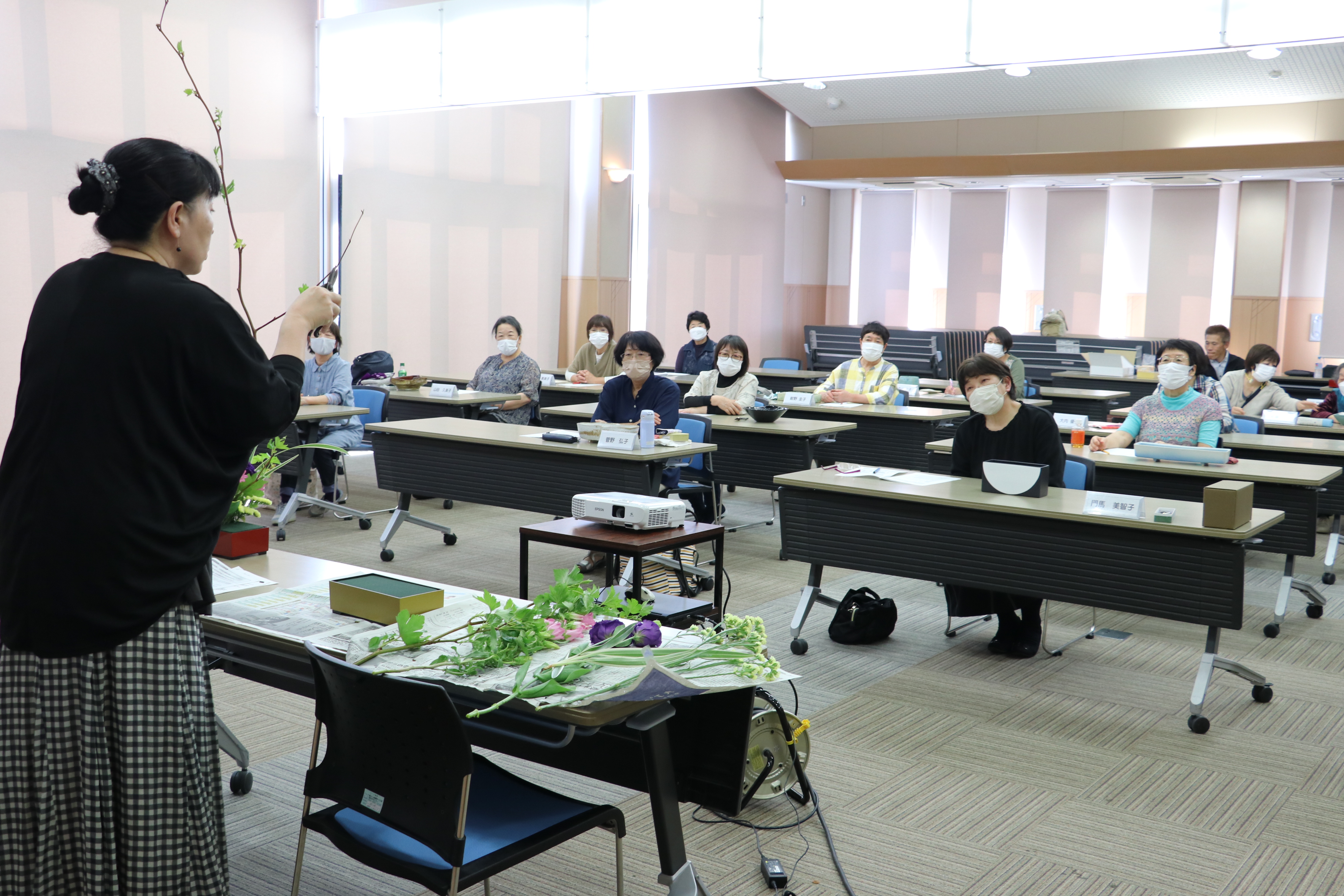 阿部取締役は「手元に来た花材としっかり向き合い、枝の動きや花の個性を生かそう」と呼び掛けました。