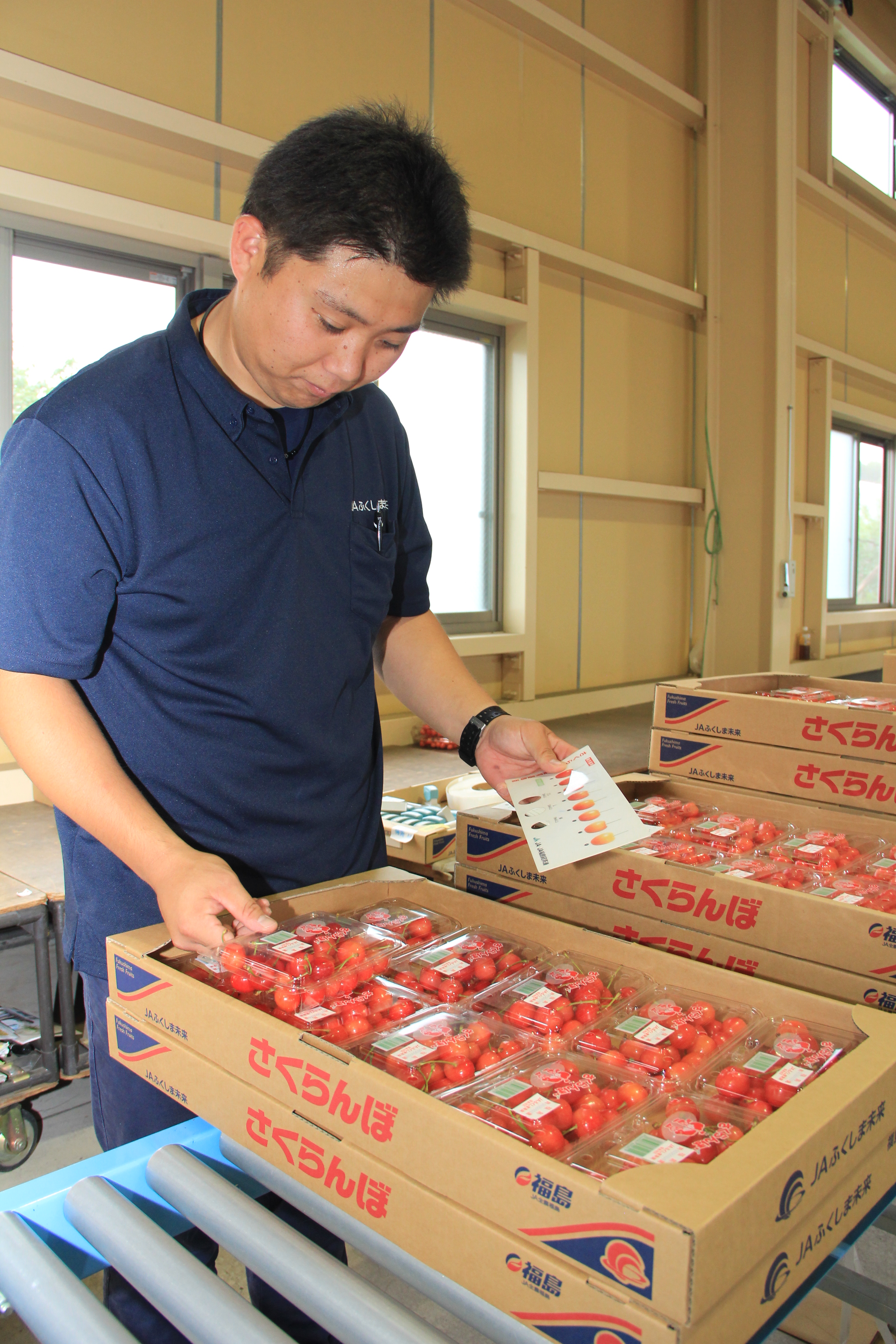 サクランボの出荷作業を行う飯坂営農センターの斎藤朋也さんは「サクランボは福島県の果樹で一番早く出る品目。多くの消費者に旬の味覚を味わっていただきたい」と話しました。同集出荷場では、今月末頃まで出荷が続く見込みで、地元市場や京浜地方に出荷します。