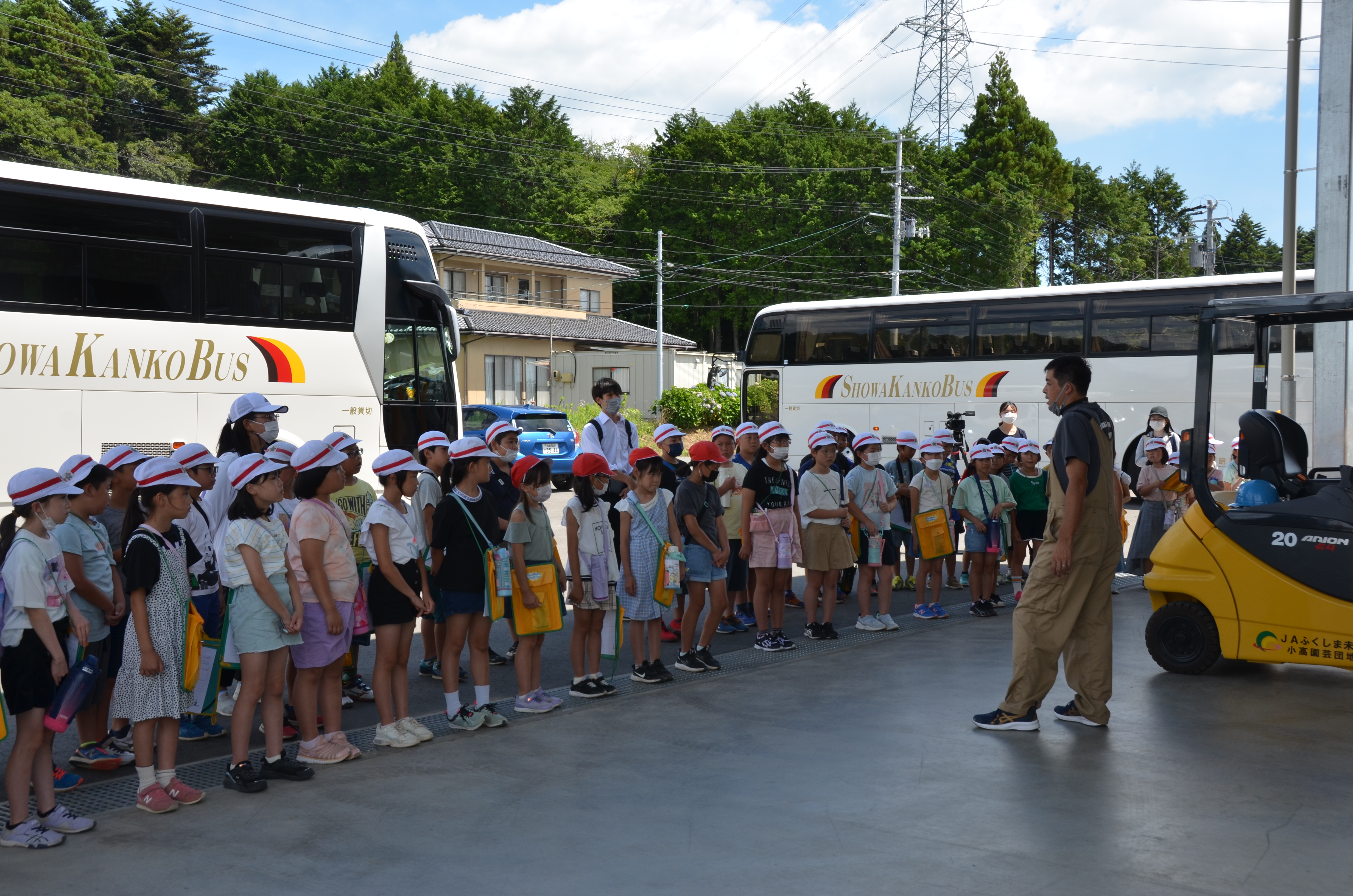 2日間で児童や先生108人が参加し、JAそうま地区営農企画課の大谷智史担当課長の説明のもと、施設見学やキュウリ収穫体験、選果機について学びました。児童からはおいしいキュウリを作るために心がけていること、仕事で苦労していることなどの質問を受けました。