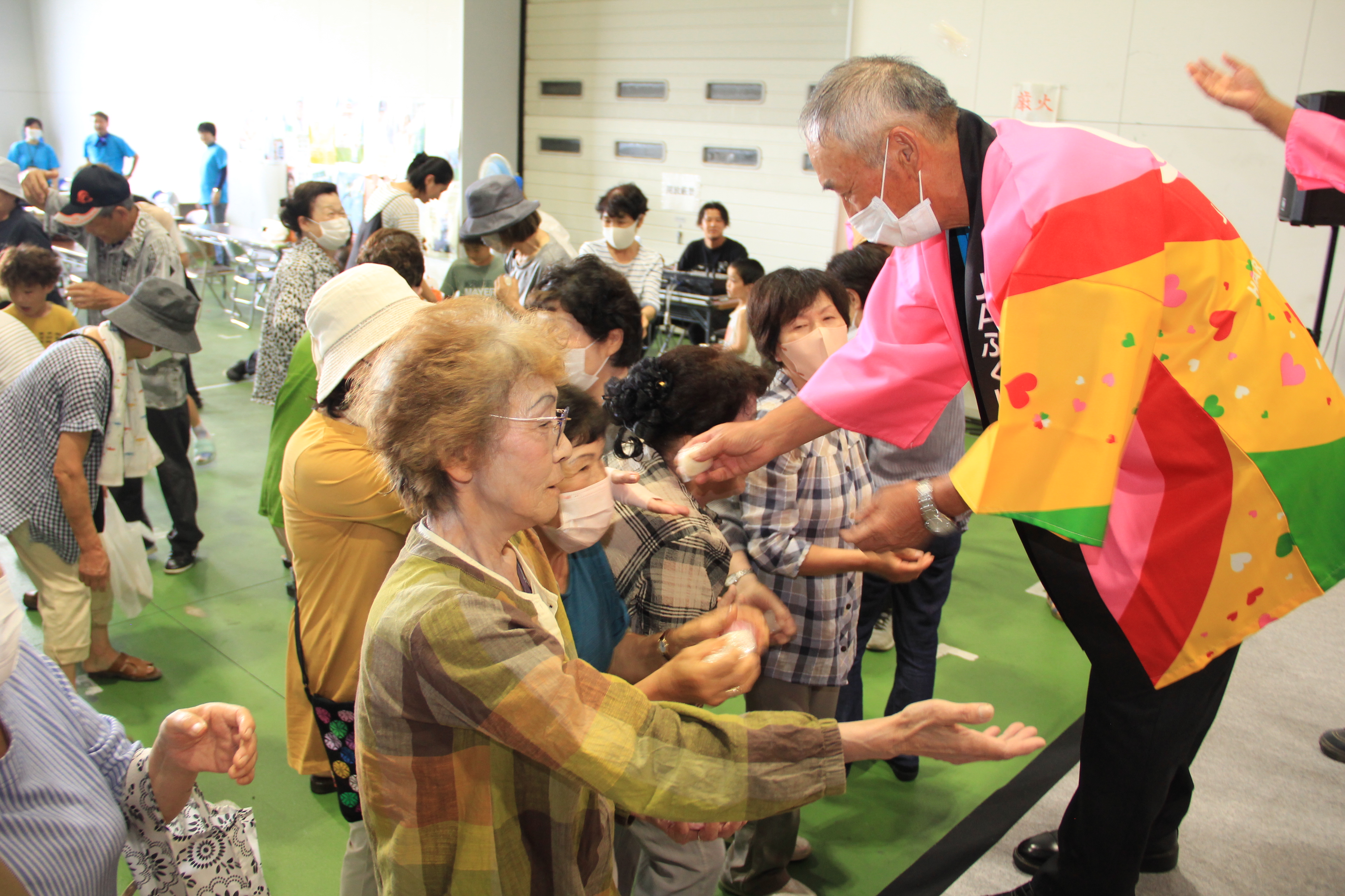 ステージイベントでは、女性部員によるダンスや大正琴、大道芸人羽舞さんによるパフォーマンスを披露しました。また、14時からは紅白もちまきが配られ、約1200人が足を運びました。