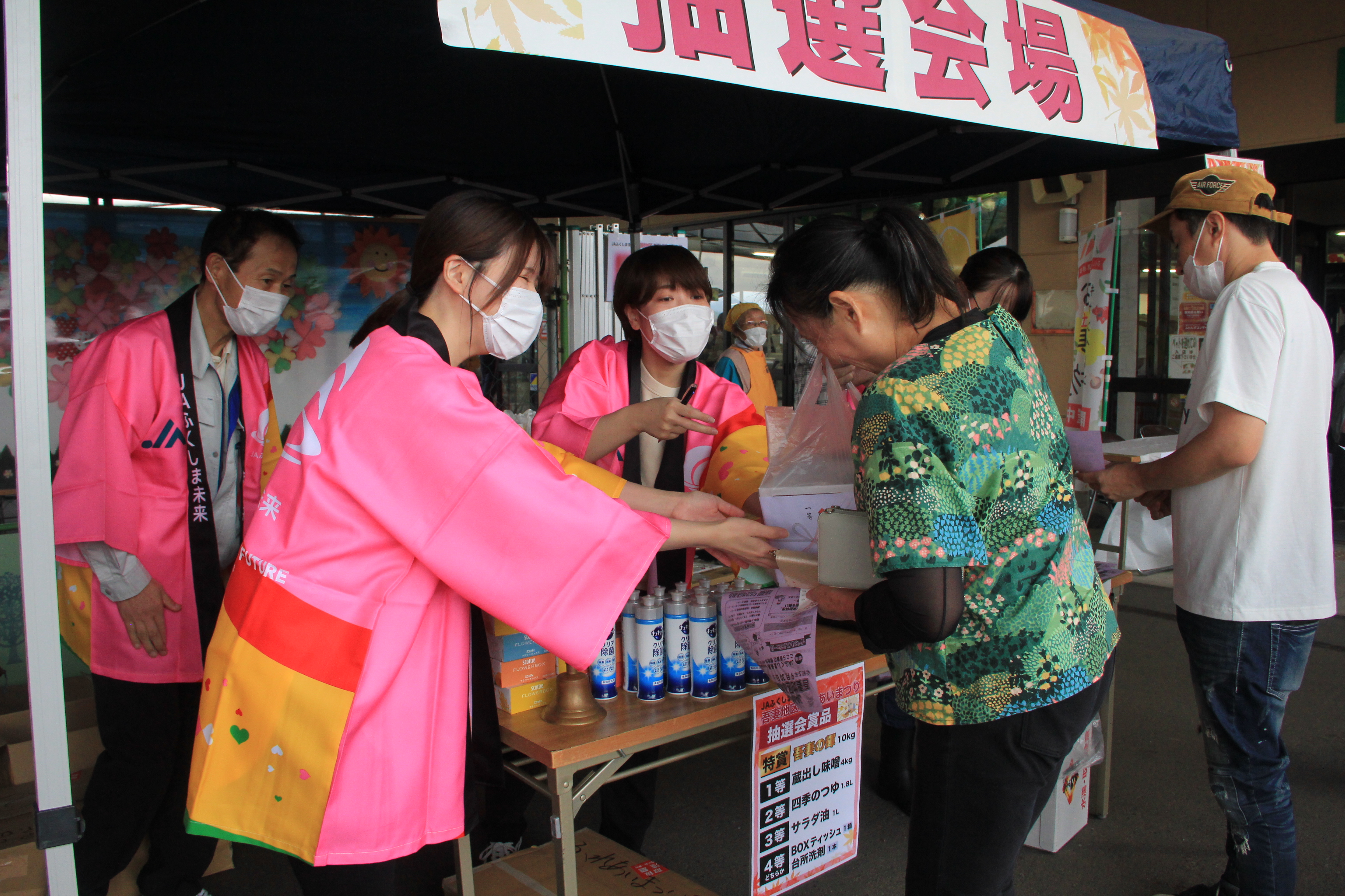 イベントでは大抽選会や女性部員によるバザーや米粉ドーナツの無料配布、ステージ発表、あきづきの試食、子どもコーナー、JA相談コーナーなどを設けて来場者を迎え大盛況でした。