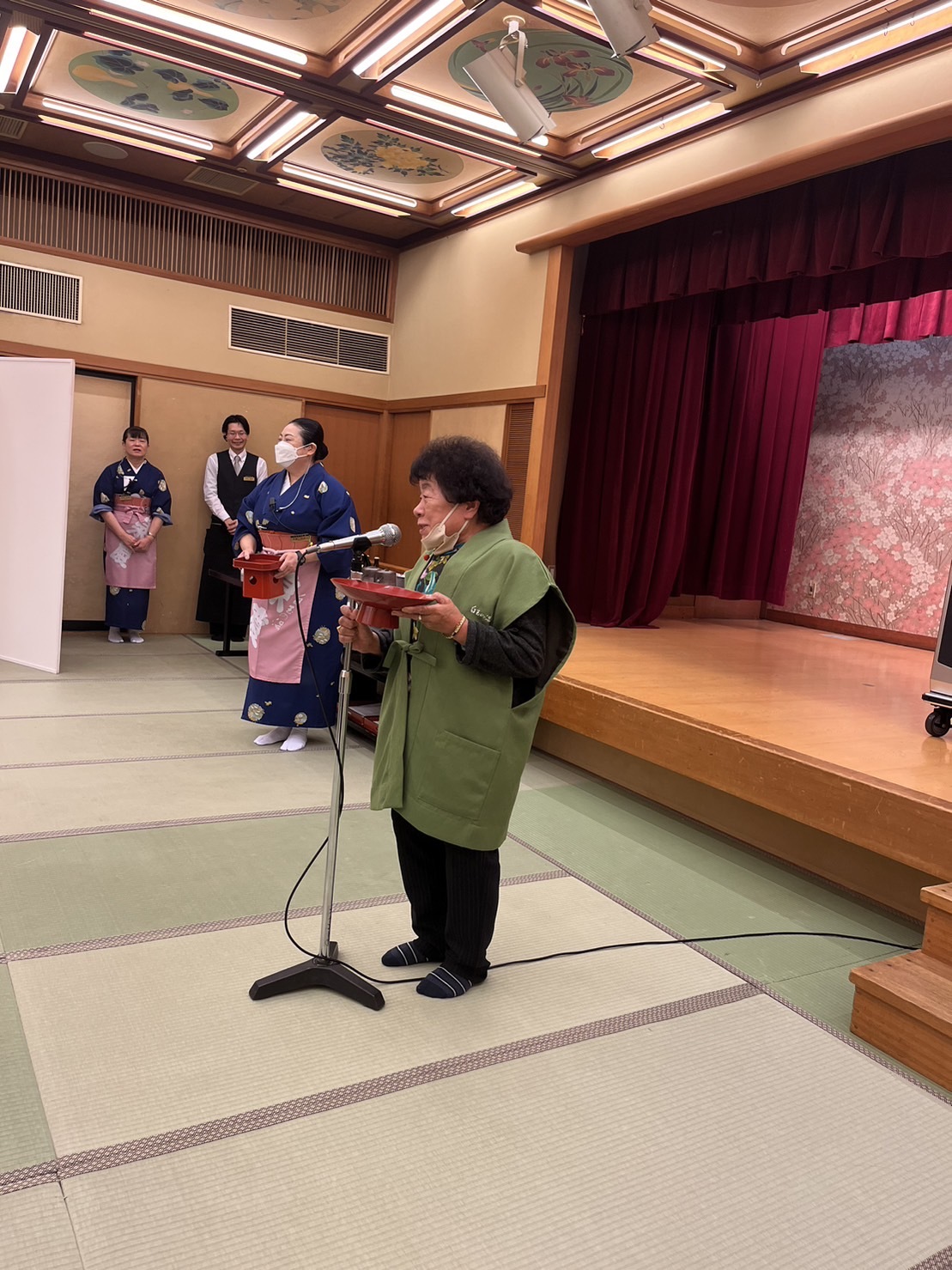 研修では、会津ころり三観音の中田・立木・鳥追観音を参拝。願いが叶えられるといわれる「だきつき柱」に抱きつき祈願をしました。鳥追観音では、住職から左甚五郎作の隠れ三猿の彫刻の説明も受けました。宿泊地の月岡温泉では、街中の散策や入浴を楽しみ、夜の懇親会ではおいしい食事と歓談、カラオケなどで大いに盛り上がり楽しいひとときを過ごしました。