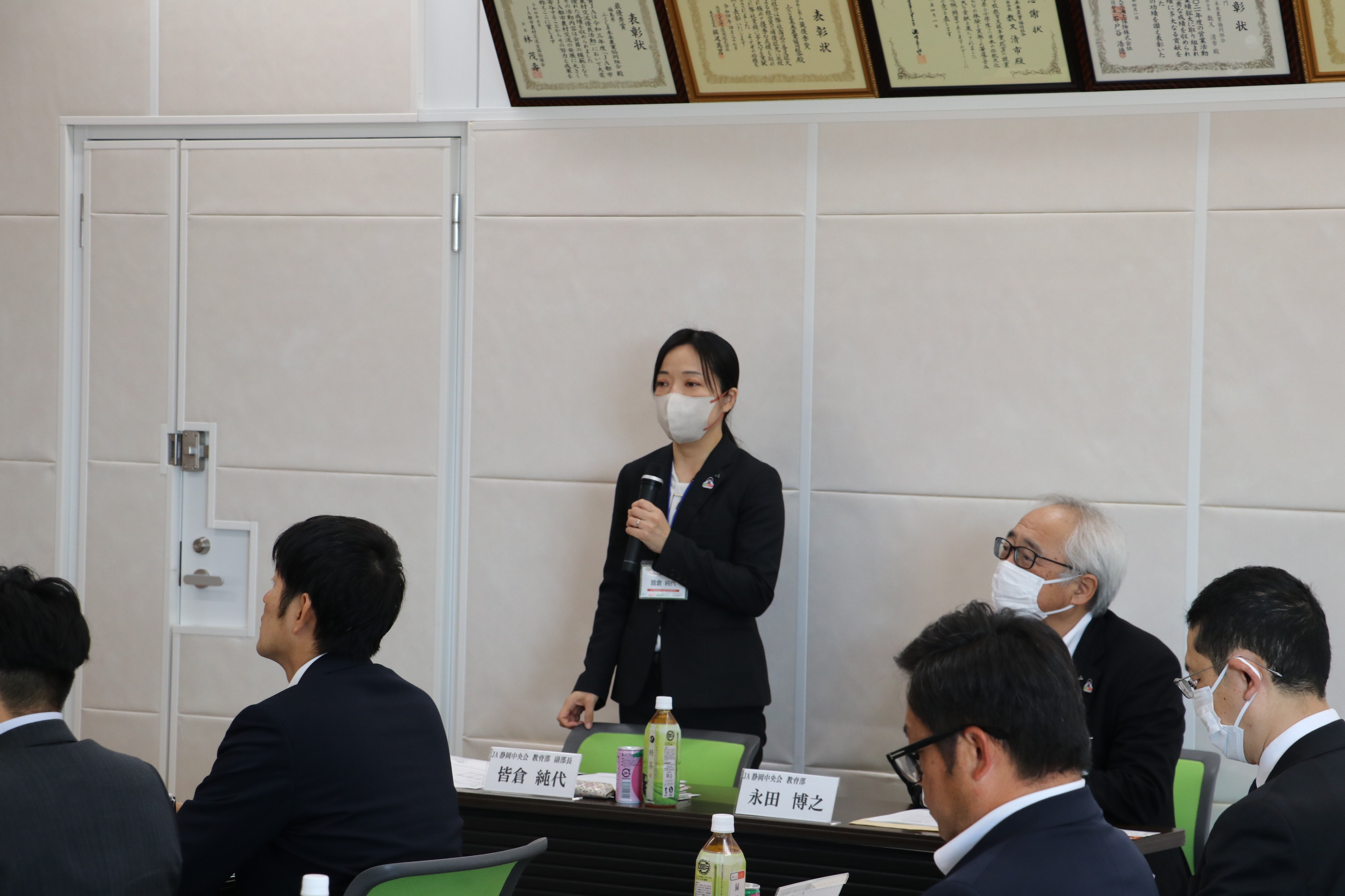JA静岡中央会教育部皆倉純代副部長は「大規模JAの人材育成について沢山質問し意見交換したい」と話しました。当JA須田淳一常務理事は「当JAの話が実りある話となるよう意見交換したい」と話しました。