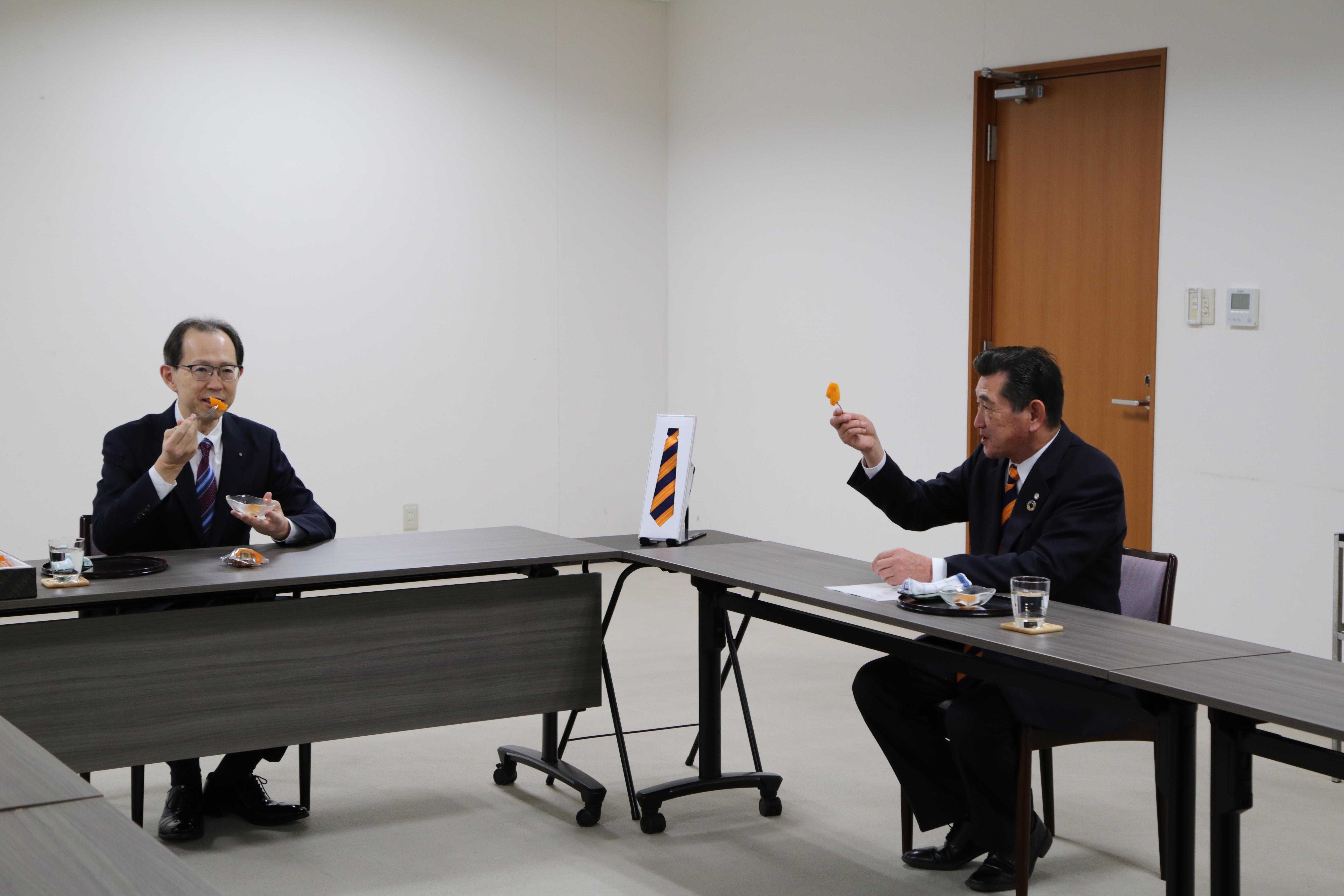 加えて、福島県農林水産部と県北農林事務所にも「伊達のあんぽ柿」と「あんぽ柿ネクタイ」を贈呈しました。
