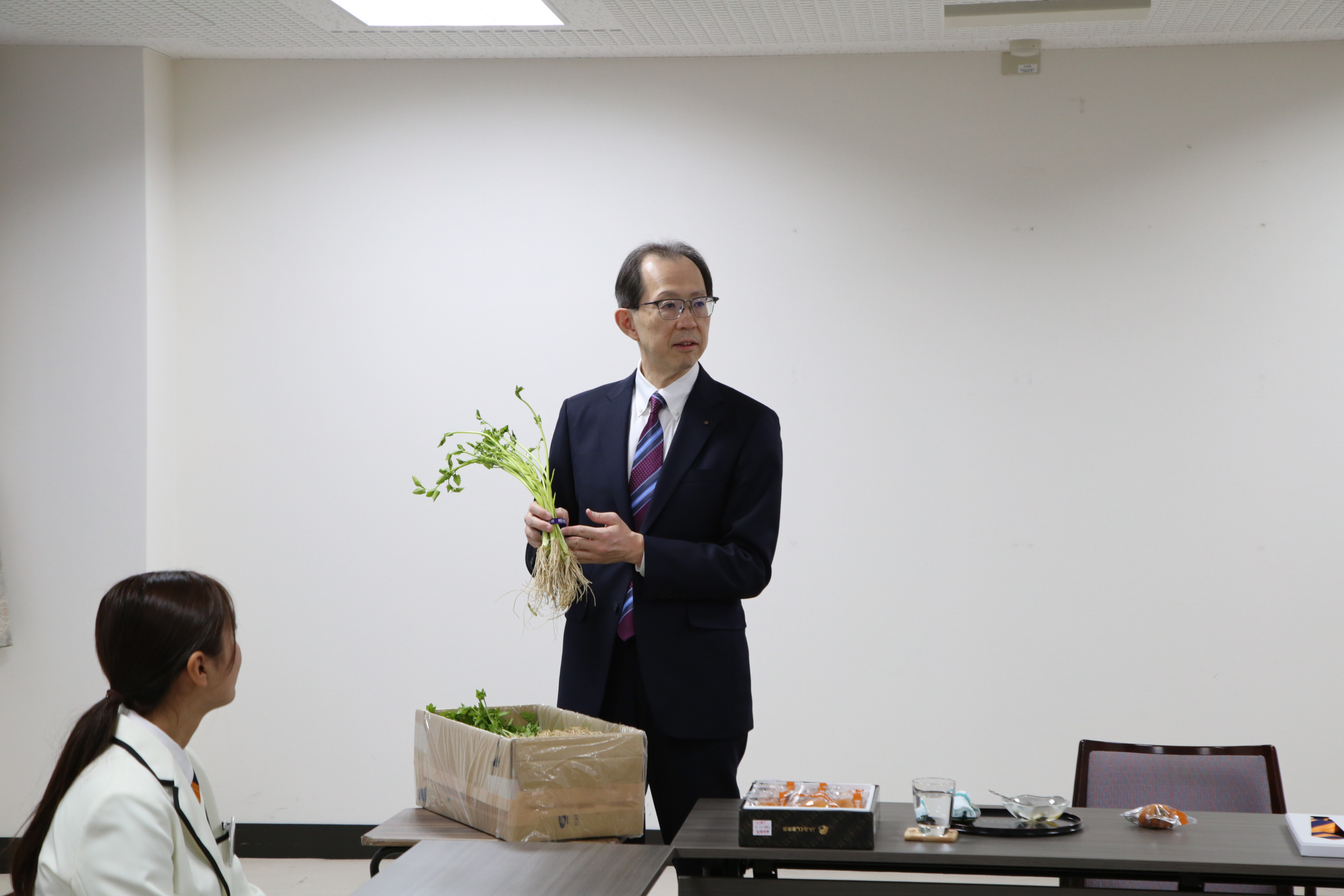 贈呈には、数又清市組合長や西幸夫常務、高橋弘営農経済部長、同JA農畜産物PR隊「J‐FAP」の佐藤亜澄さんが訪れました。