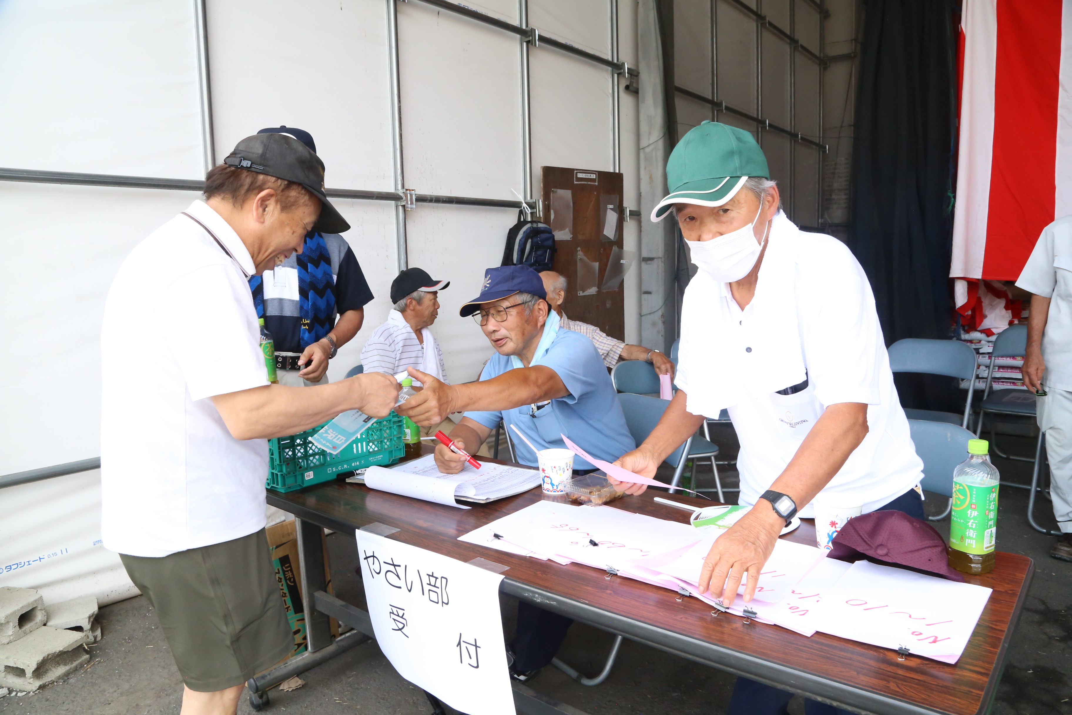 白沢資材店舗の前を会場に、高松山権現太鼓ショー、米山愛子歌謡ショー、スイカ叩きやじゃんけん大会などを行いました。ホット&クールスリム扇風機、福島牛肉などが当たる抽選会では、たくさんの来場者が訪れ盛り上がっていました。JA職員による焼きそば・やきとり、飲み物コーナー・かき氷、女性部による玉コン・フランクフルトコーナーの出店も盛況で組合員や地域住民と楽しくふれあいました。