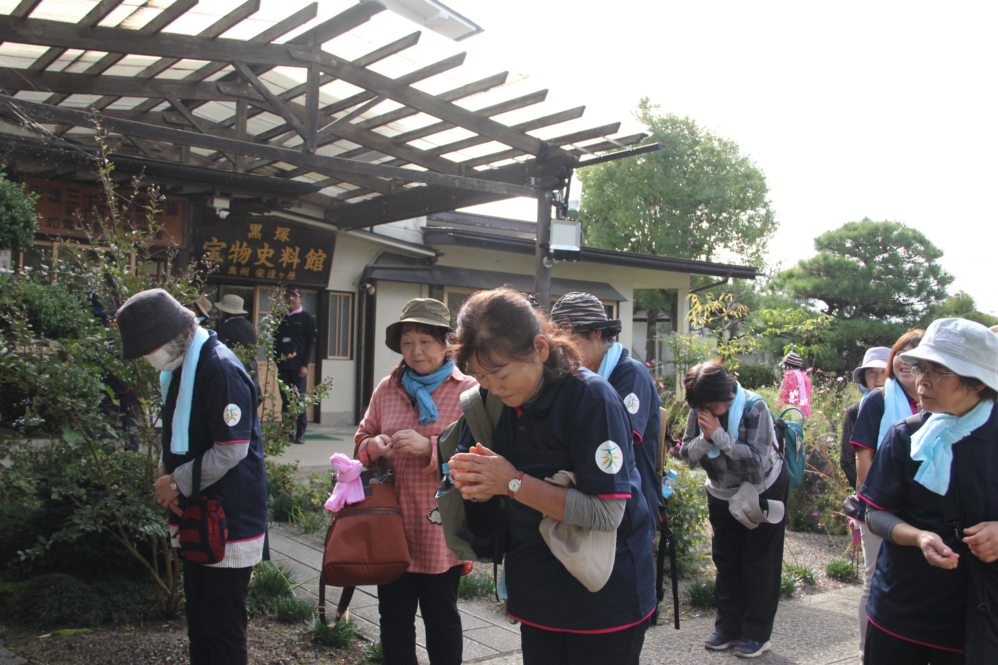 女性部安達地区本部の黒沢由美部長は「安達地区のおいしいものを楽しみながら、きれいな緑と気持ちの良い風を感じて歩いてほしい」とあいさつしました。参加者らはコース途中に設けているきゅうりの一本漬けや二本松市の九頭見菓子舗の「ピーナツっこ」の振る舞い、観世寺の見学を楽しみました。