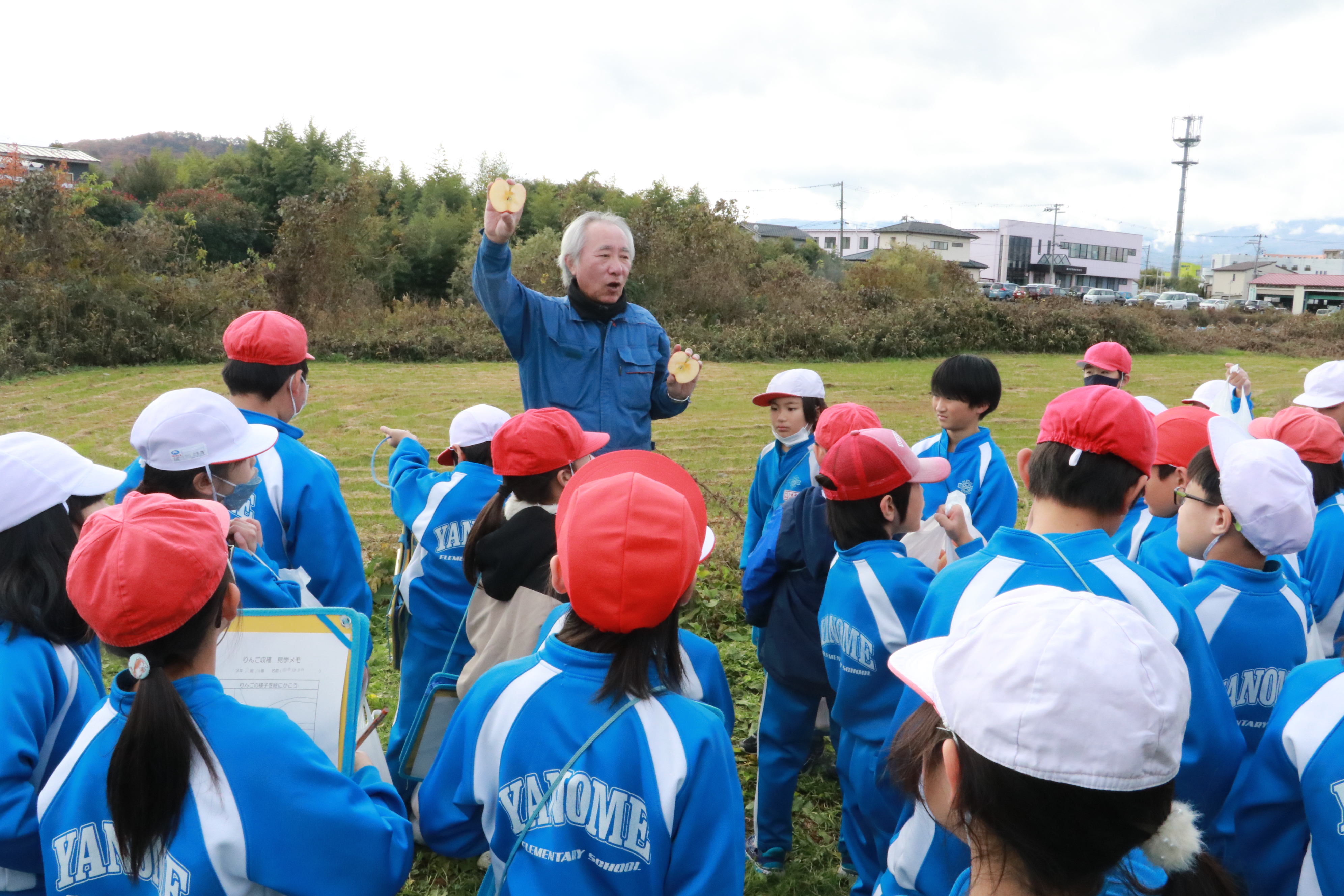 当JAは27日、福島市の生産者の圃場でリンゴの農業体験を行いました。学校教育支援事業の一環で、地域の小学校と連携し、児童らが食と農への理解を深めることを目的に開いています。