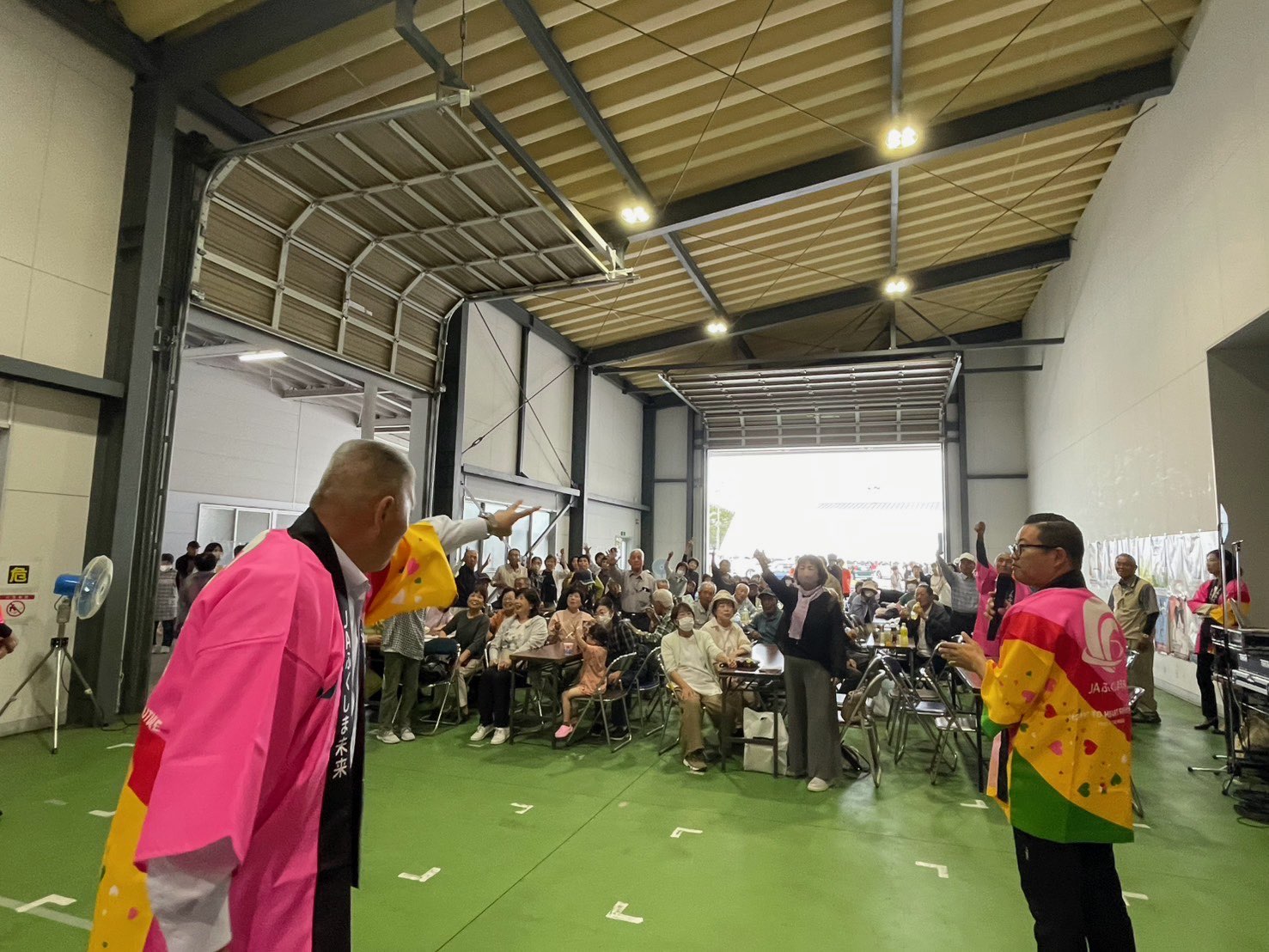 ステージイベントでは、じゃんけん大会や芸能発表として地域住民らがスポーツ民謡やダンス、雅楽演奏などを披露し、会場が盛り上がりました。宮城県出身の歌手、米山愛子さんによる歌謡ショーも行いました。