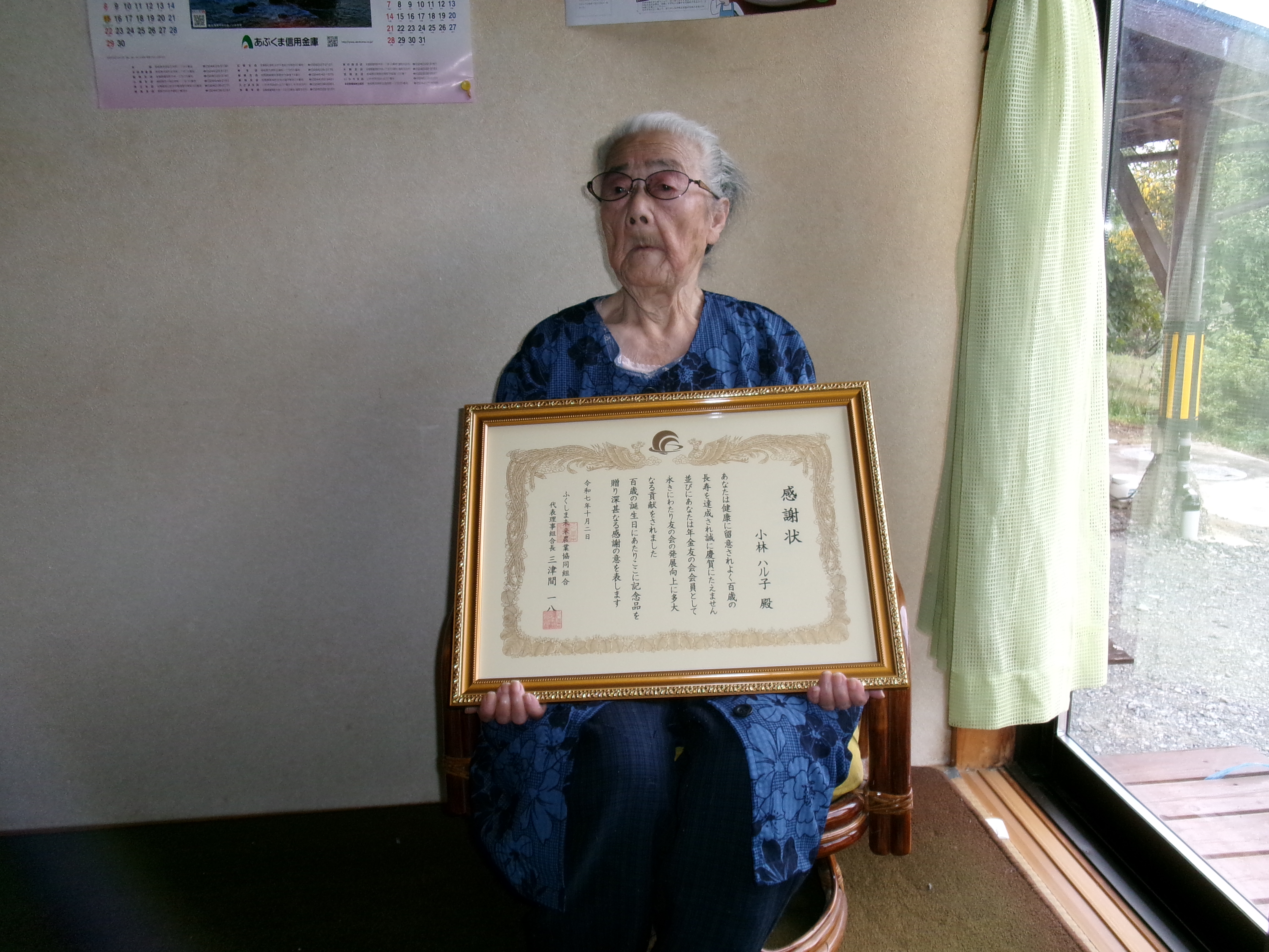 当JA飯舘支店管内の小林ハル子さんが10月2日に100歳の誕生日を迎えたため、3日、自宅で長寿祝いを行いました。