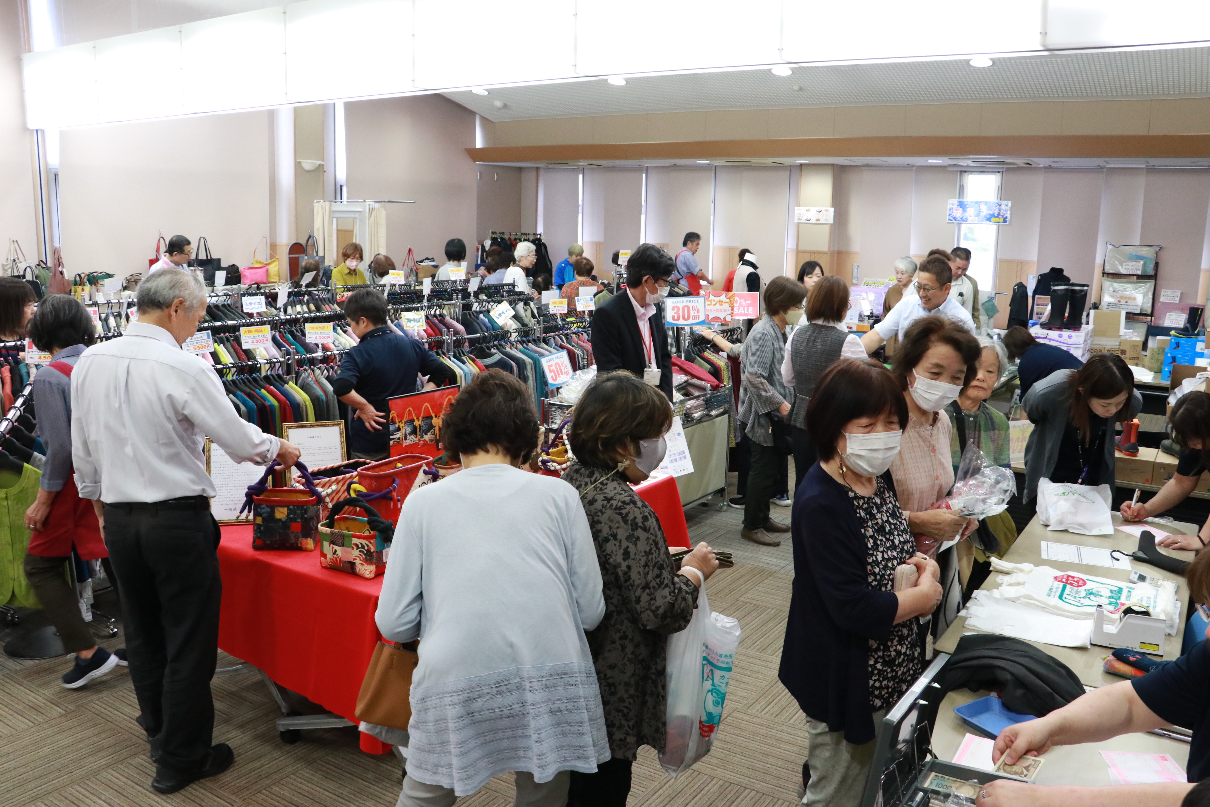 当JA福島地区本部は7日、当JA北信支店で「生活用品展示会」を開催しています。婦人服や紳士服をはじめとし、バック、衣服、寝具類などを販売しています。