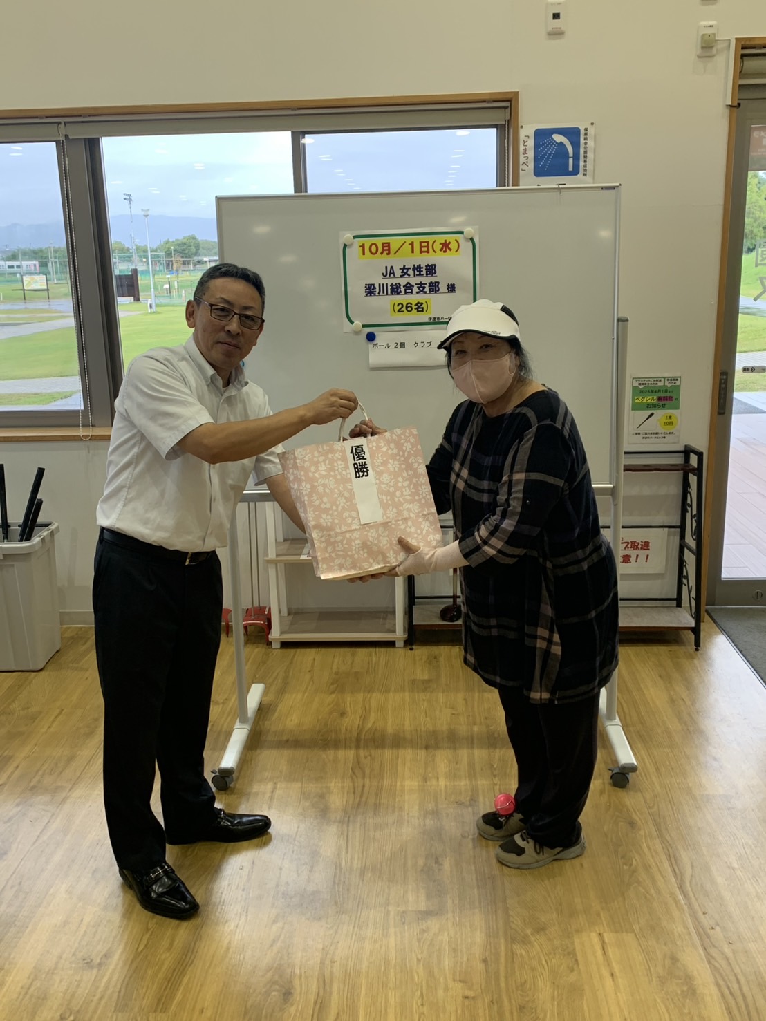 開会式では、三浦順子部長が「けがのないようにプレーしましょう」とあいさつ。あいにくの雨天でしたが、元気にプレーし交流を深めました。昨年に引き続き、村上綾子さんが優勝しました。