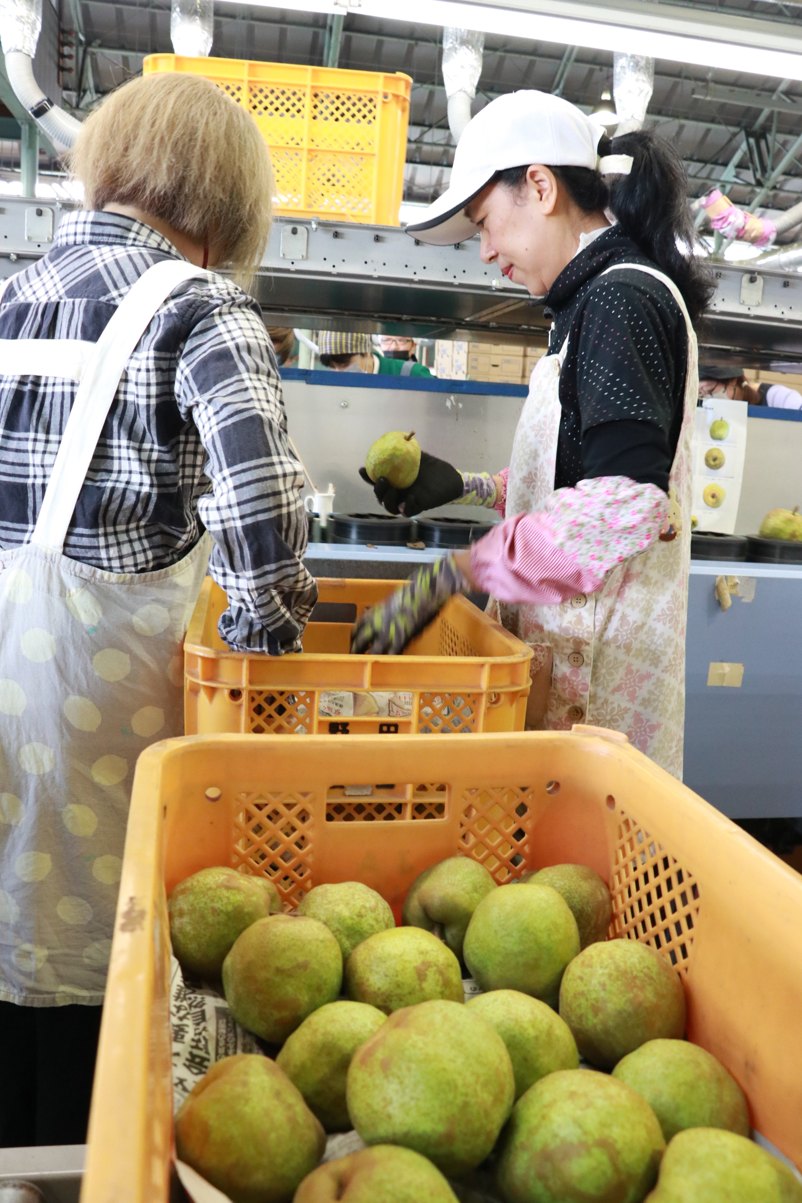 当JAふくしま未来福島地区は17日、福島地区の野田共選場で西洋梨「ラ・フランス」の共選出荷を開始しました。
