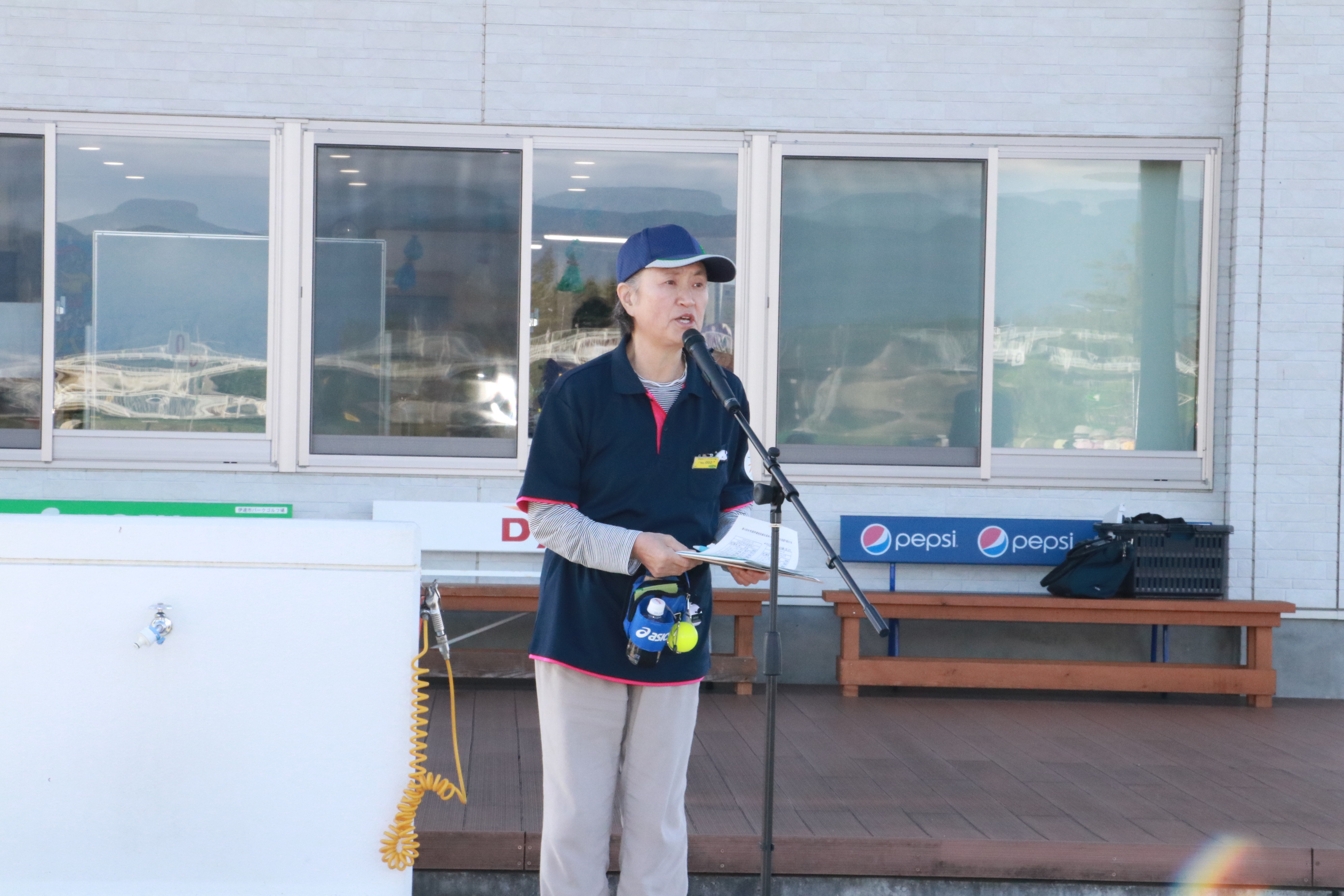 開会式では、石上一成役員代表と女性部伊達地区本部三浦順子部長があいさつ。三浦部長は「パークゴルフを通じて心も体も動かし交流を楽しんでほしい」と話しました。全員でラジオ体操をした後にプレーが始まりました。