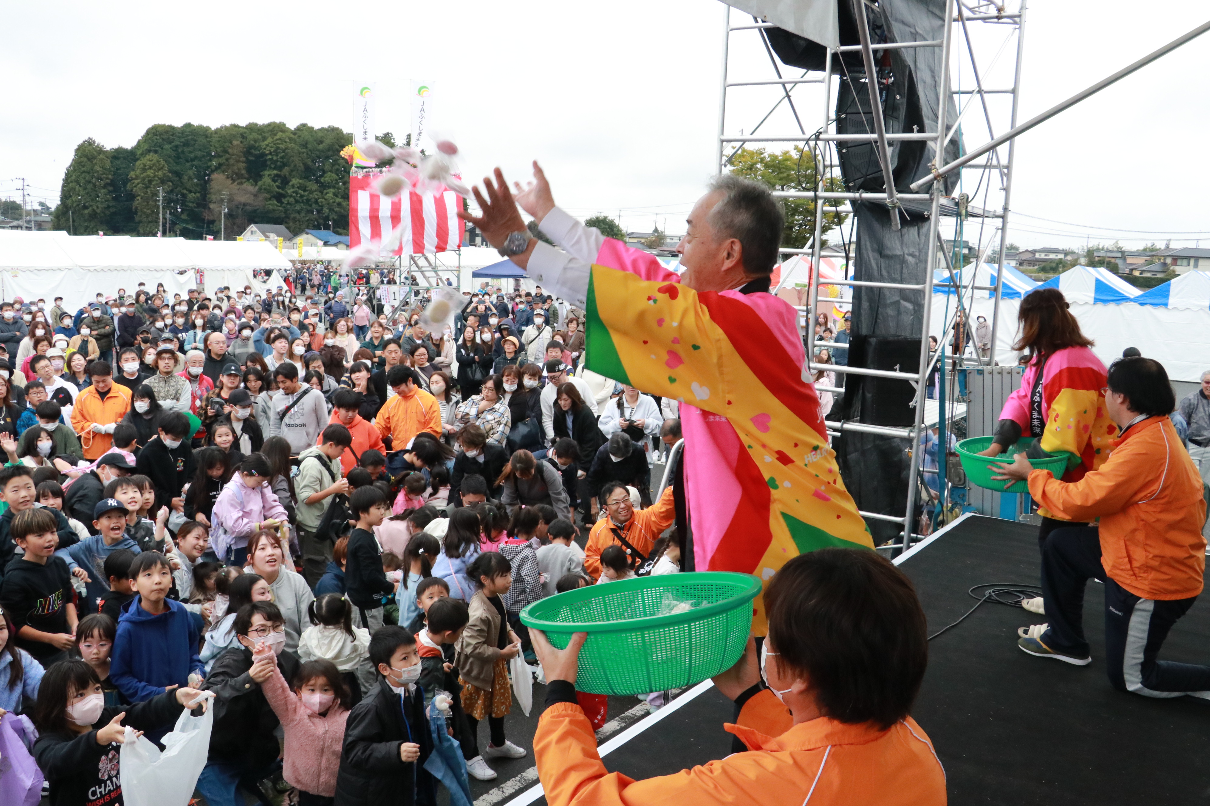 1日目には、農産物共進会の表彰式を行い、優れた農産物を出品した出場者を表彰しました。ステージでは、演歌歌手の徳永ゆうきさんの歌謡ステージや楽器演奏、歌、踊りなどで会場が盛り上がりました。2日目は、支部対抗の玉入れ大会や出場者によるダンス披露などを行い、多くの来場者が訪れました。