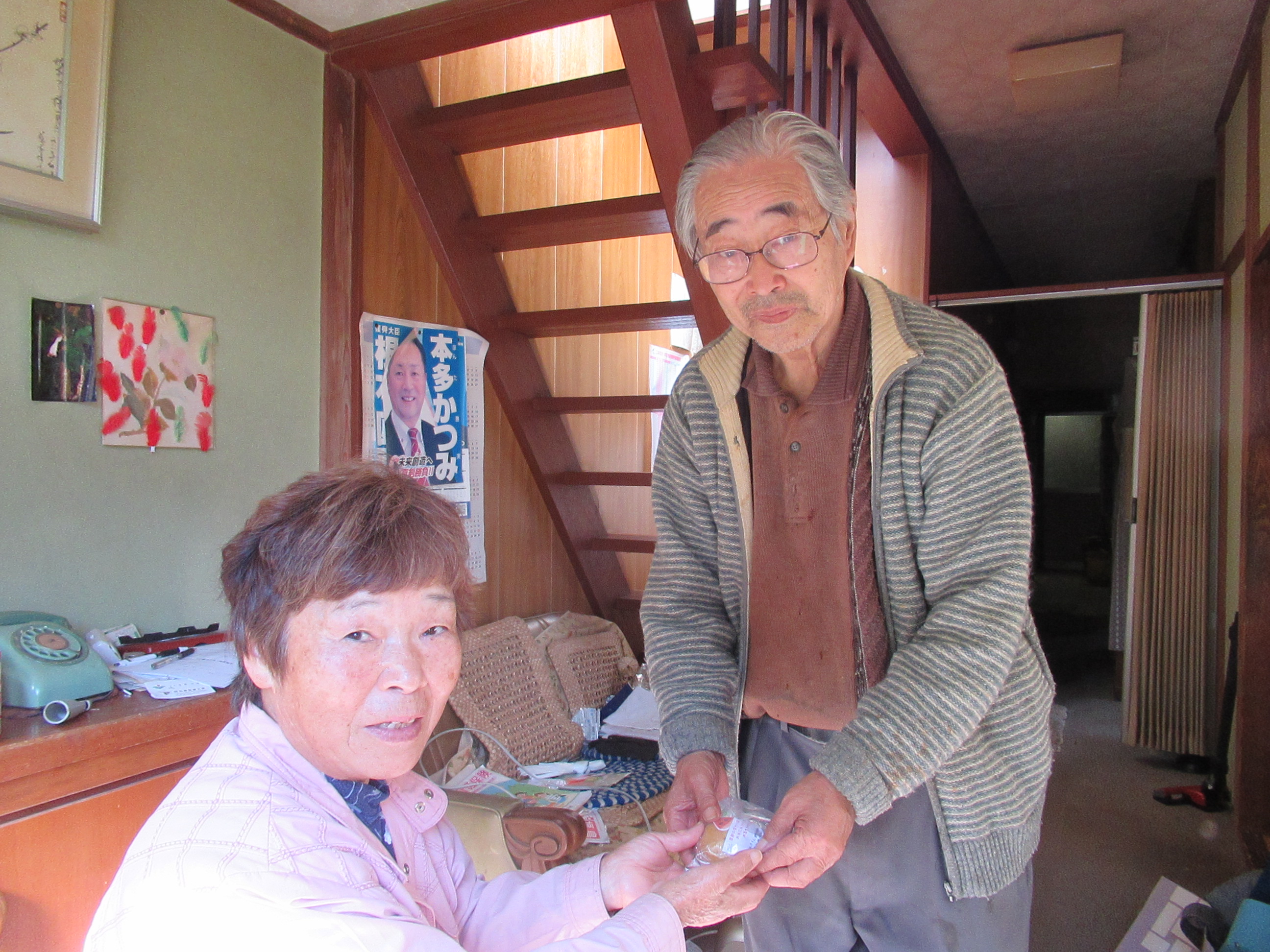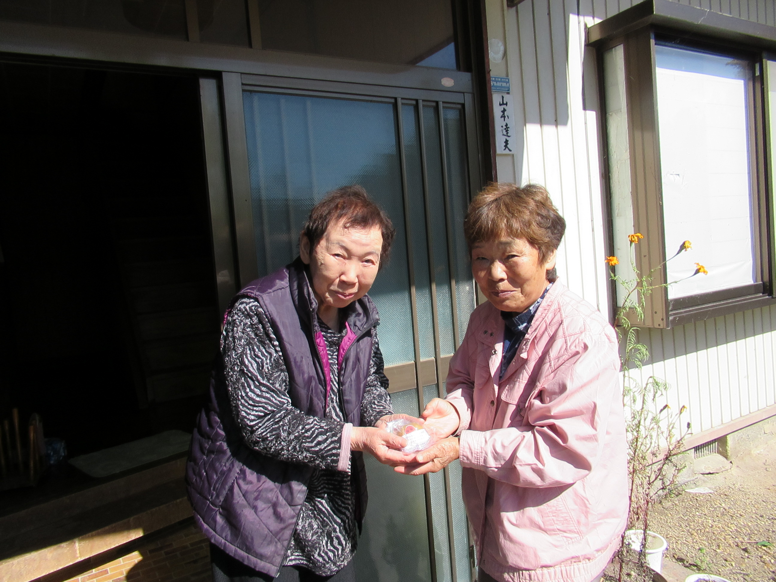 当JA女性部岩代総合支部ふれ愛グループよつば会は23日、一人暮らしの高齢者へ毎年恒例の一人暮らしの高齢者へ訪問しふれ合い活動でお菓子をプレゼントしました。同会は毎年2回訪問活動を行っています。岩代地区管内の75歳以上の一人暮らしの高齢者60人に同ふれ愛グループよつば会の16人が協力して届けました。訪問先では「毎年楽しみにしています」と喜びの声があり、参加した会員からは「今年も元気そうでよかった」と感想を話しました。