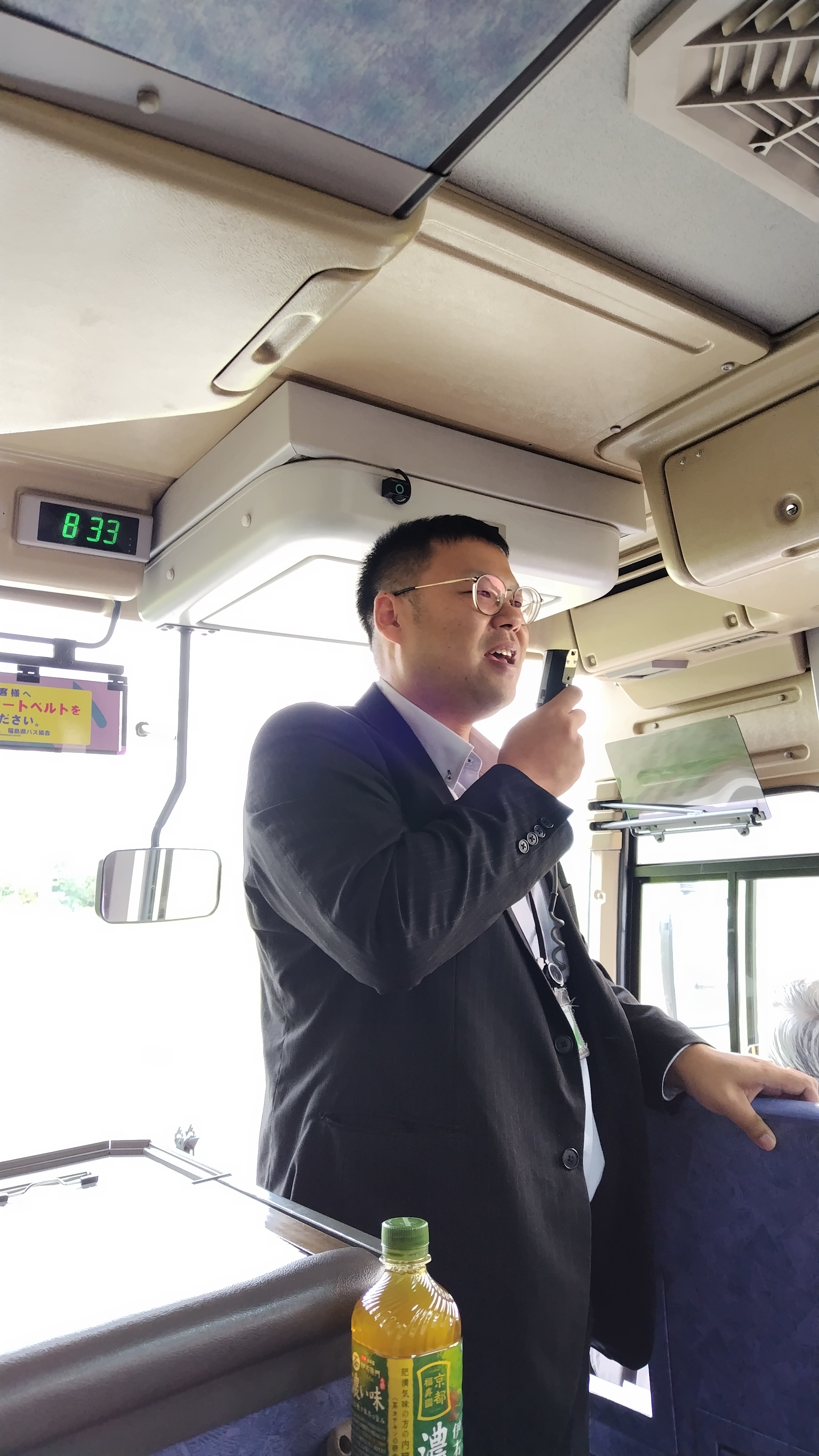 また、移動中のバスの中では、LAの丹野駿職員による金融・共済商品の説明が行われ、部員たちは熱心に耳を傾けていました。