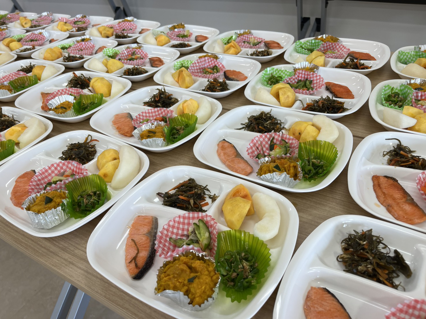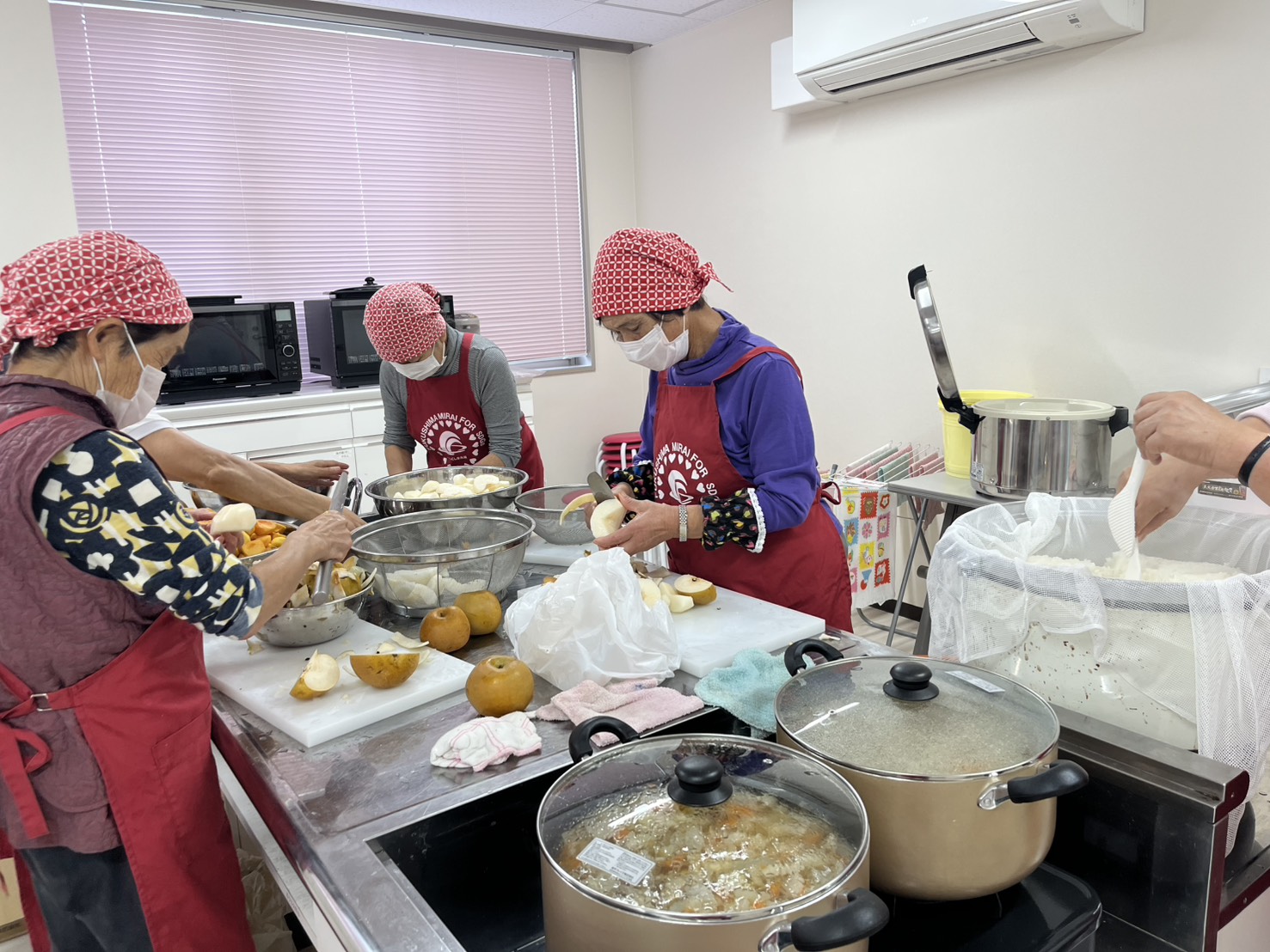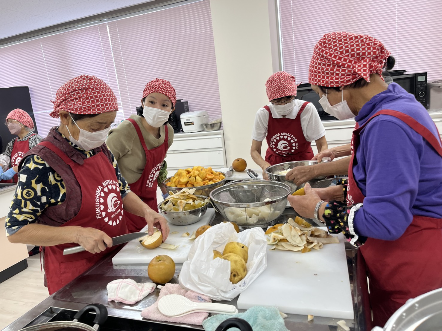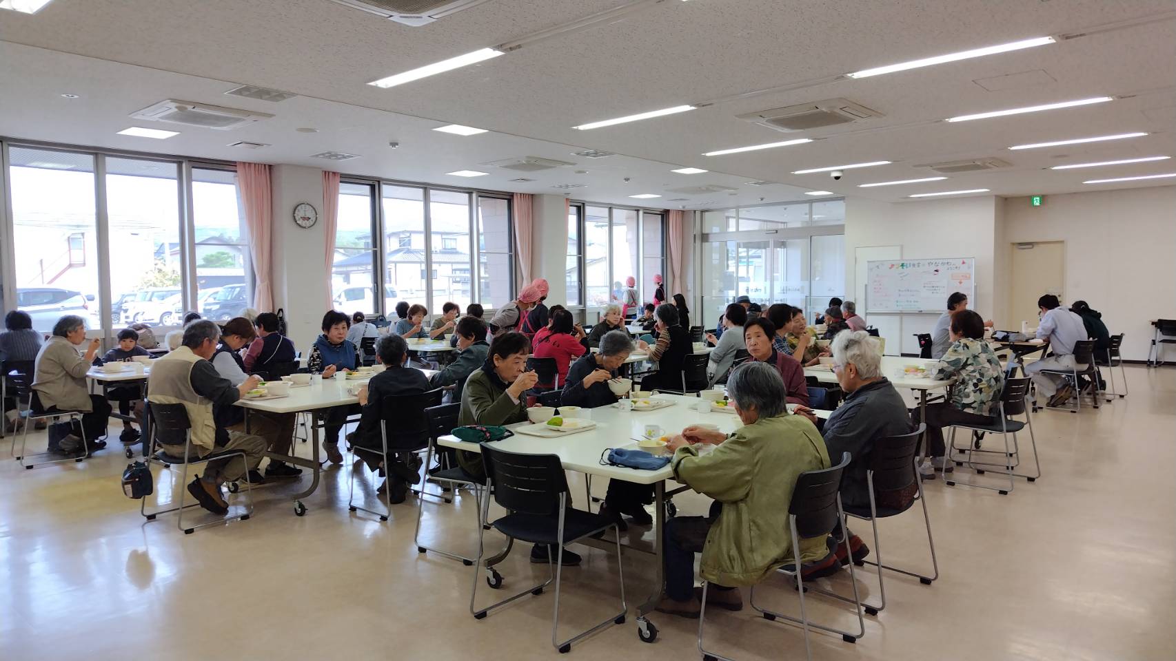 当JA女性部伊達地区本部は10月18日、伊達市のみらいホールやながわで「よりそい食堂☘やながわ」を開催しました。今回のメニューは、地元で収穫した新米、女性部や地域の生産者から寄付された野菜たっぷりのいも煮汁、鮭です。開店前から来場客が列を作り、117人が来場しました。食事をしながら会話を楽しみ、地域のコミュニティの場となりました。