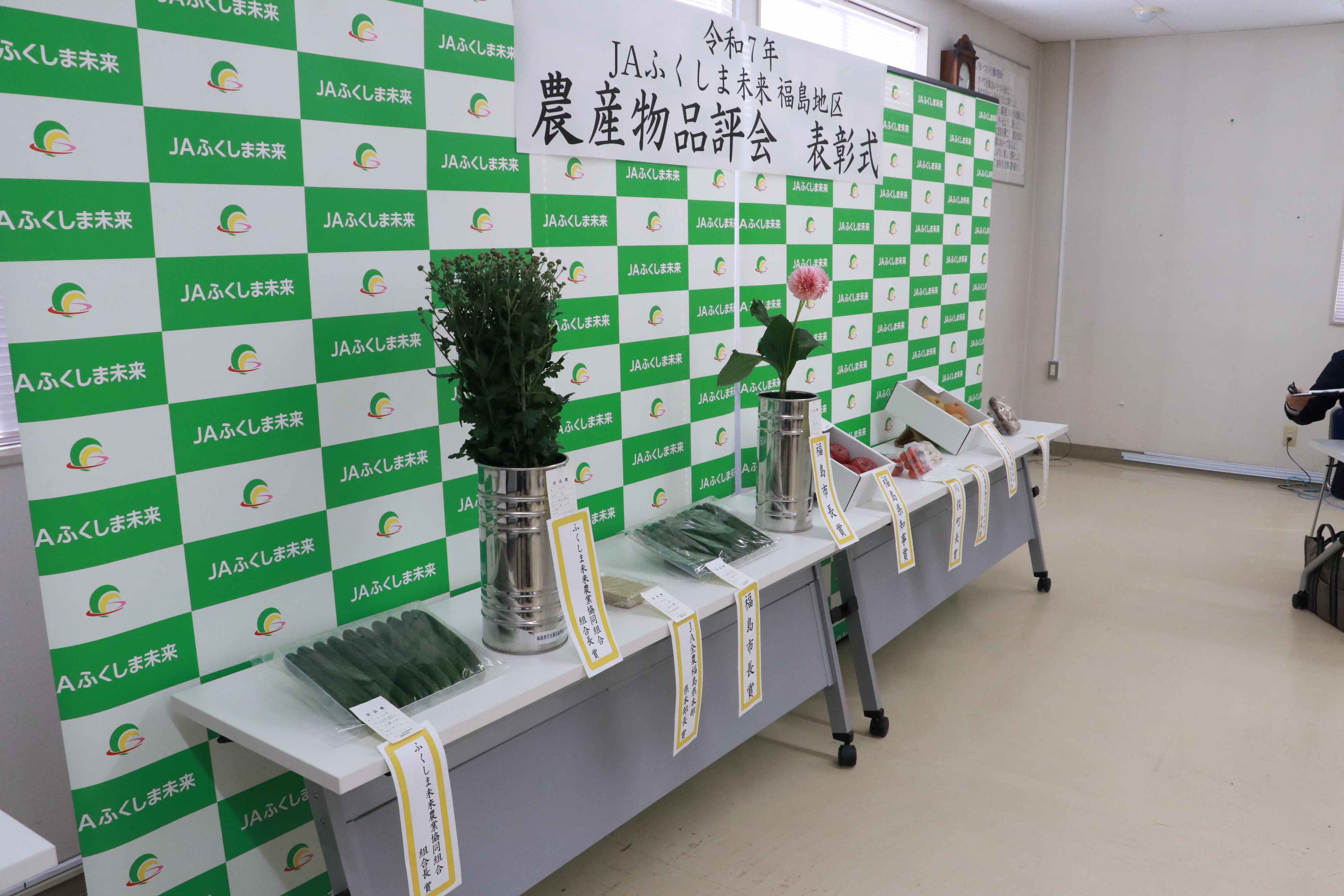 当JA福島地区は14日、2025年度農産物品評会表彰式を福島市のJA本店で開き、出品総数191点の中から48点の作物を選出しました。