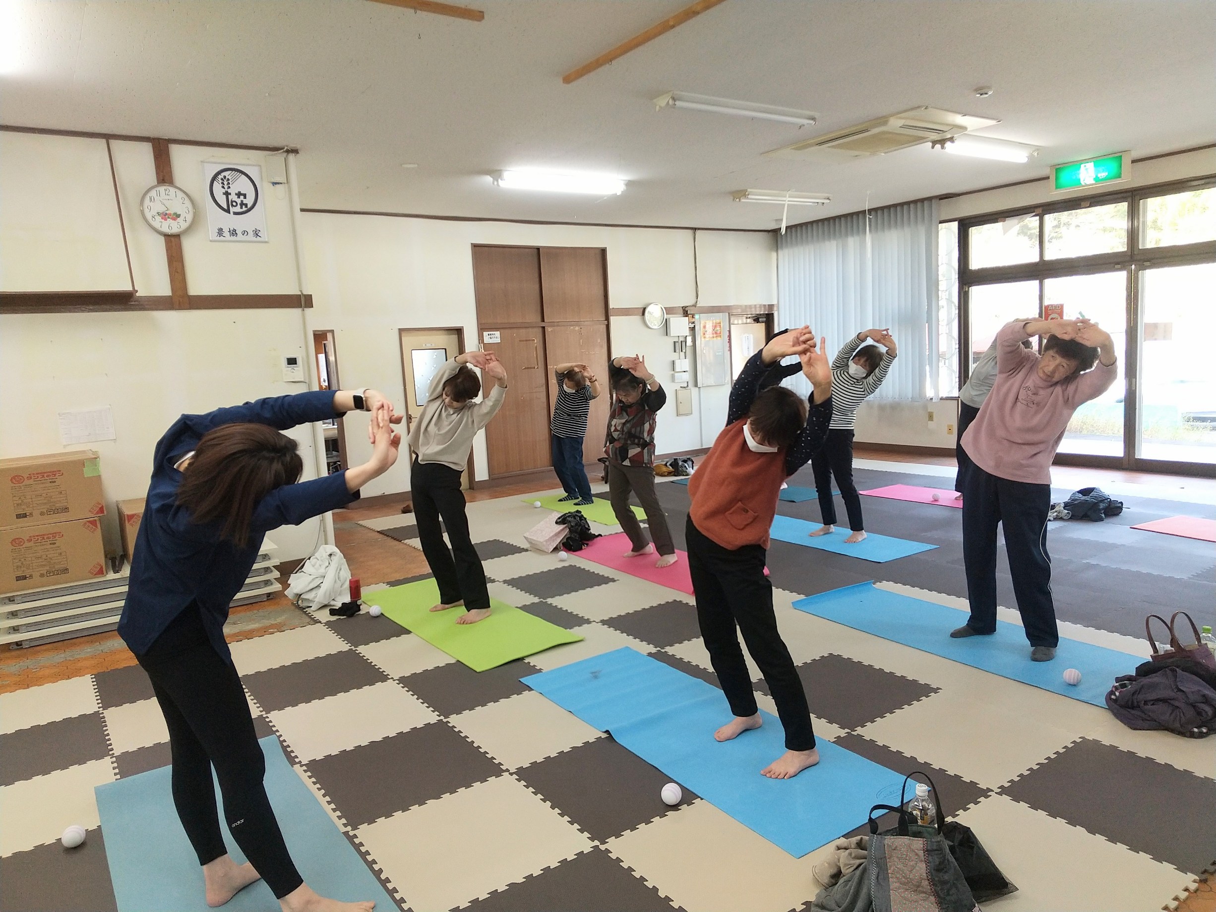 黒澤さんは「寒くなって体がこわばり不調が出やすい時期なので体をととのえていきましょう」と話し、全員でエクササイズを行いました。参加者は「短時間で骨盤がシュっとなった。家でも続けていきたい」と感想を話しました。