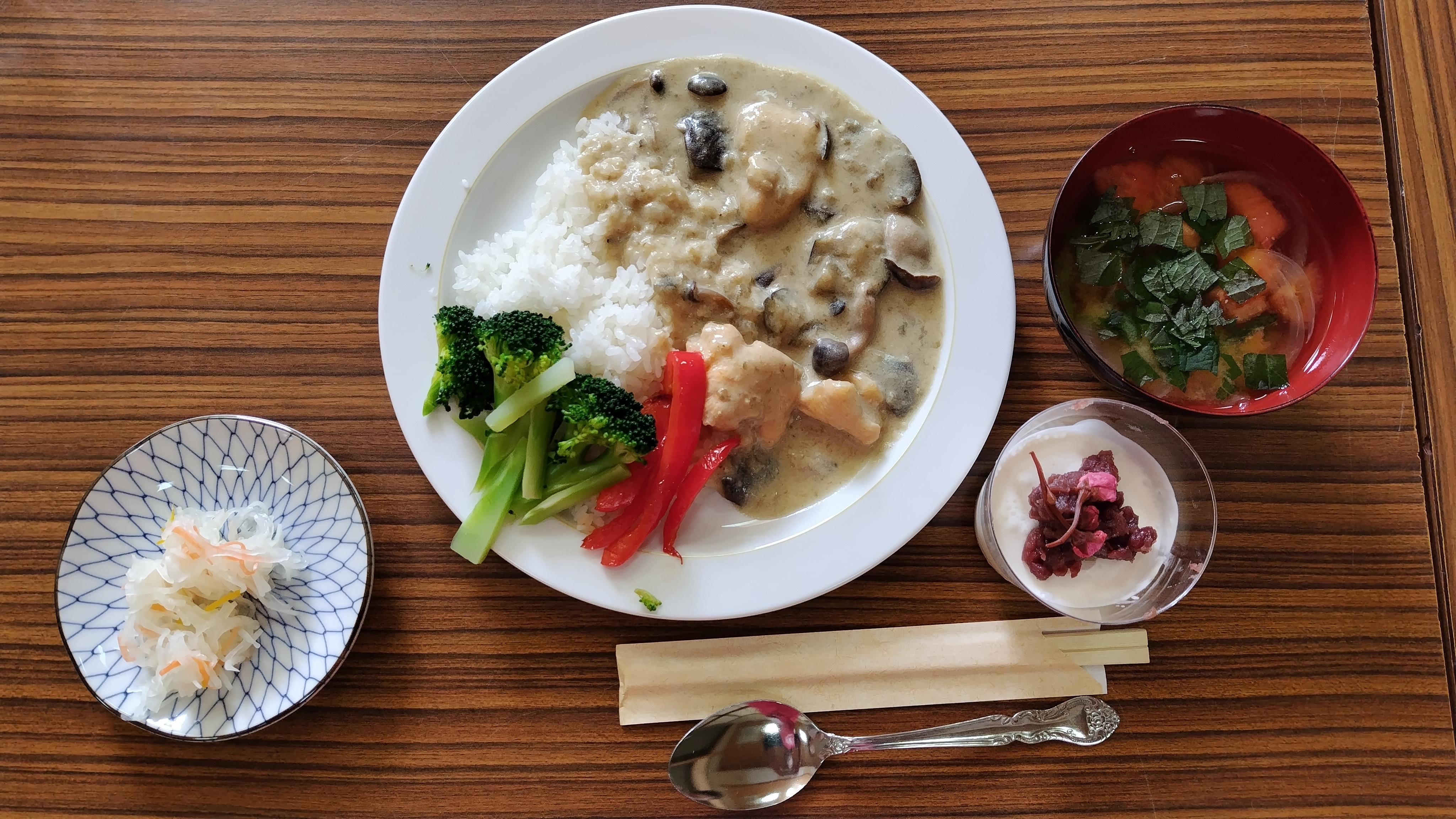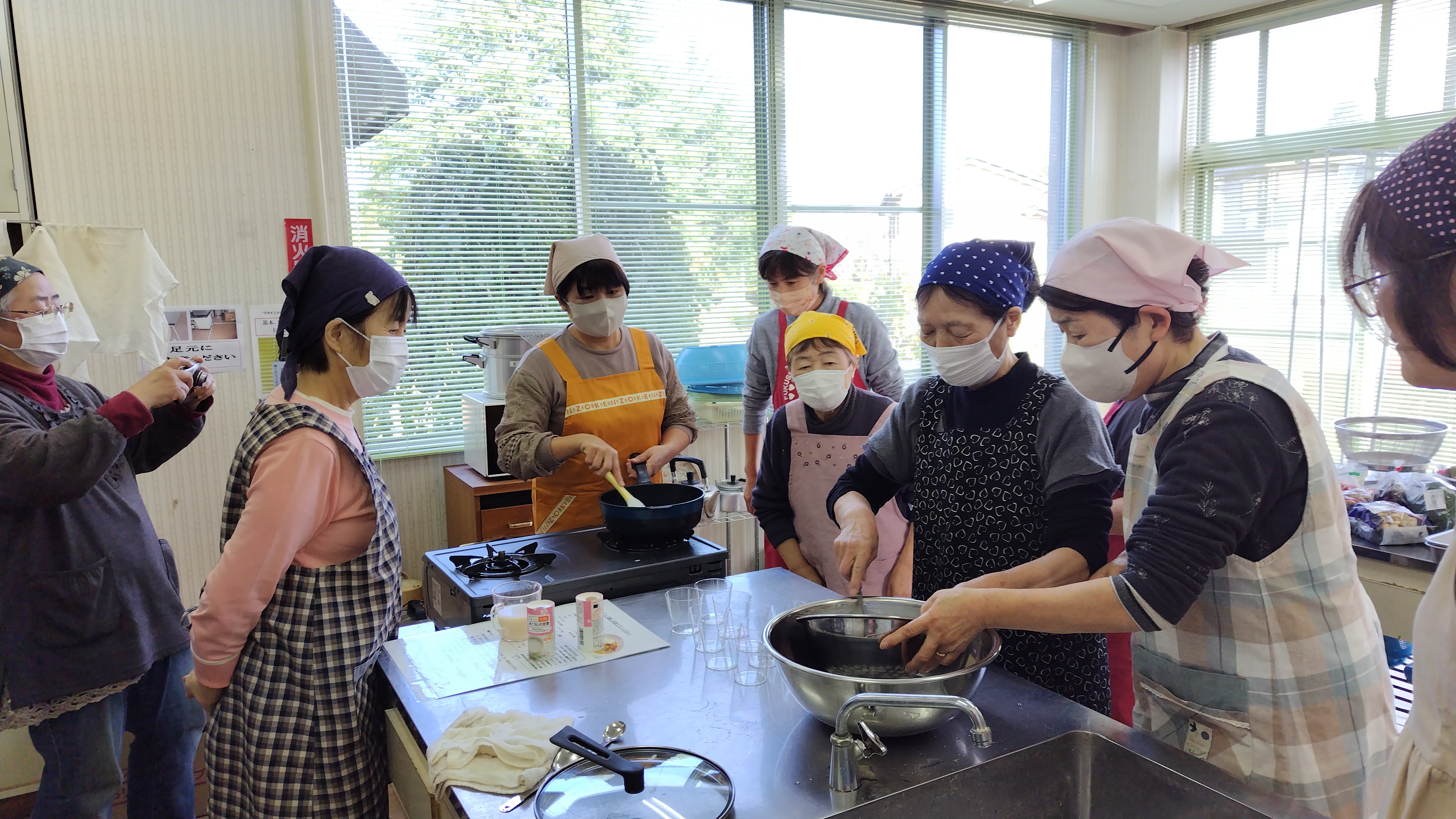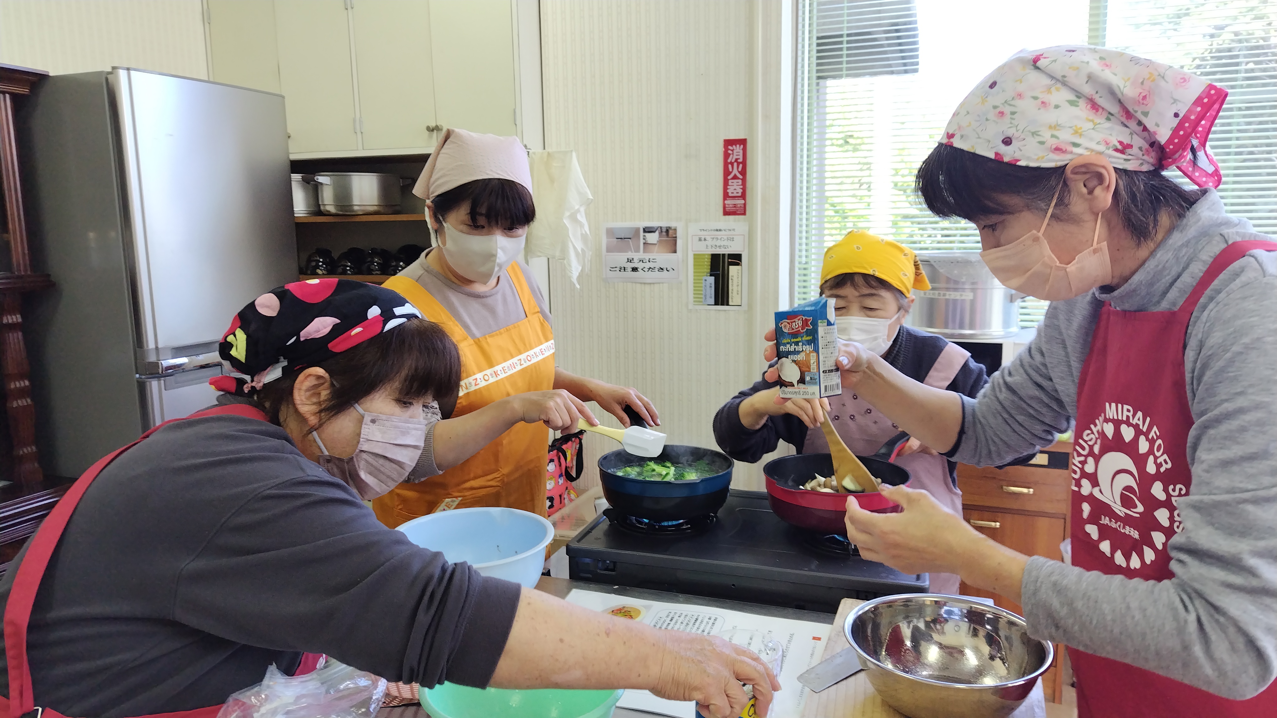 当JA女性部東大枝支部は14日、伊達市の東大枝地区交流館で料理教室「クッキングスクール」を開きました。今回は家庭料理研究家の大橋早苗さんを講師に招き、部員9人が参加しました。メニューは「スパイス麹と甘酒のグリーンカレー」、「季節野菜のお味噌汁」、「甘酒のパンナコッタ風ムース」と体にやさしい健康メニュー。参加した部員は「鶏肉がやわらかくおいしくできた。家でも作ってみたい」と振り返り、部員同士で交流を深めました。