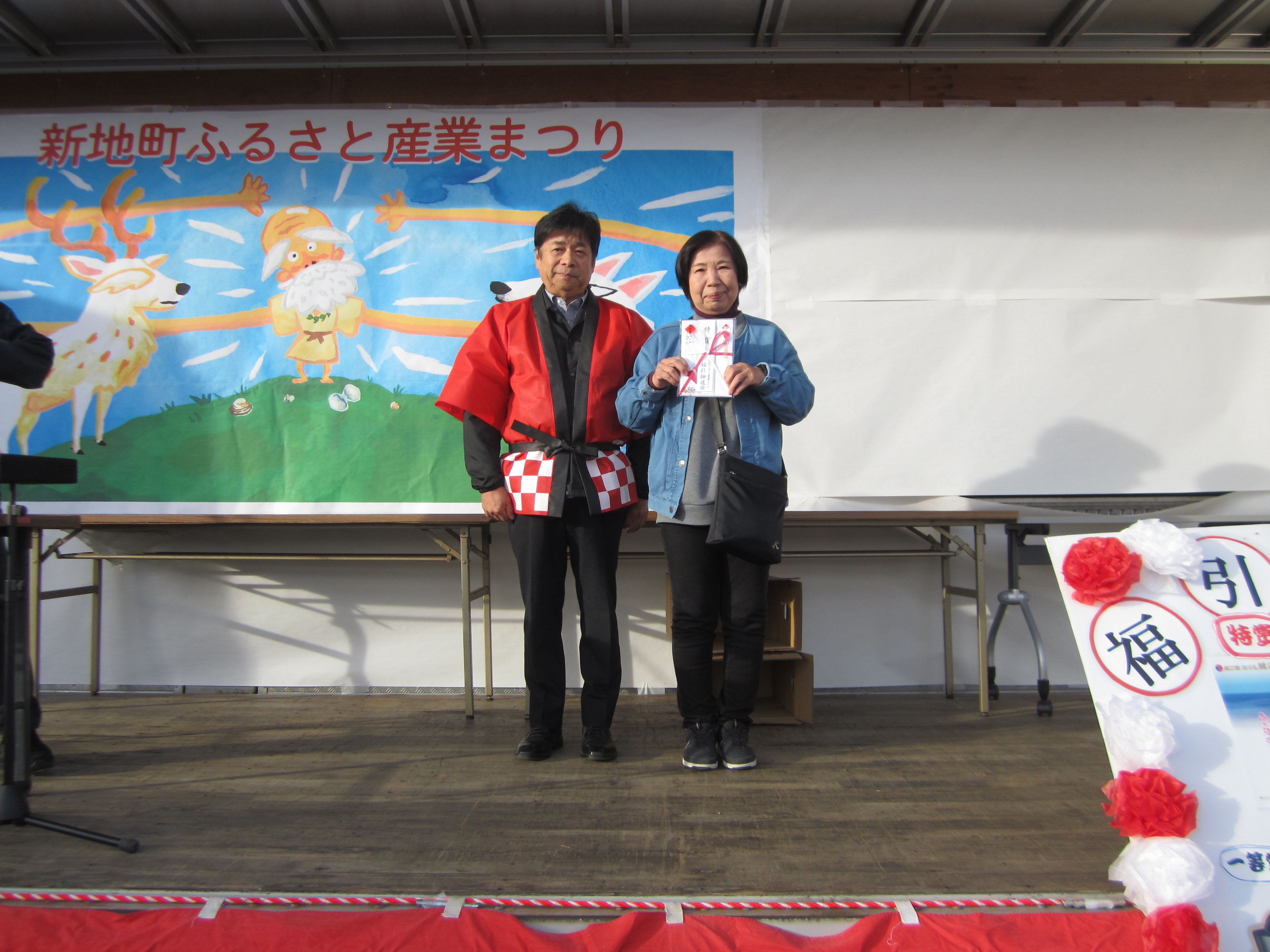 新地支店は「本店や他地区のイベントは遠くて参加しづらい」との地域の声を受け、地元開催のイベントに積極的に参加しています。今回は福引抽選券引換所で普段接点の少ない住民にもチラシを配布し、記念定期や年金指定替え、組合員加入など利用拡大を図りました。