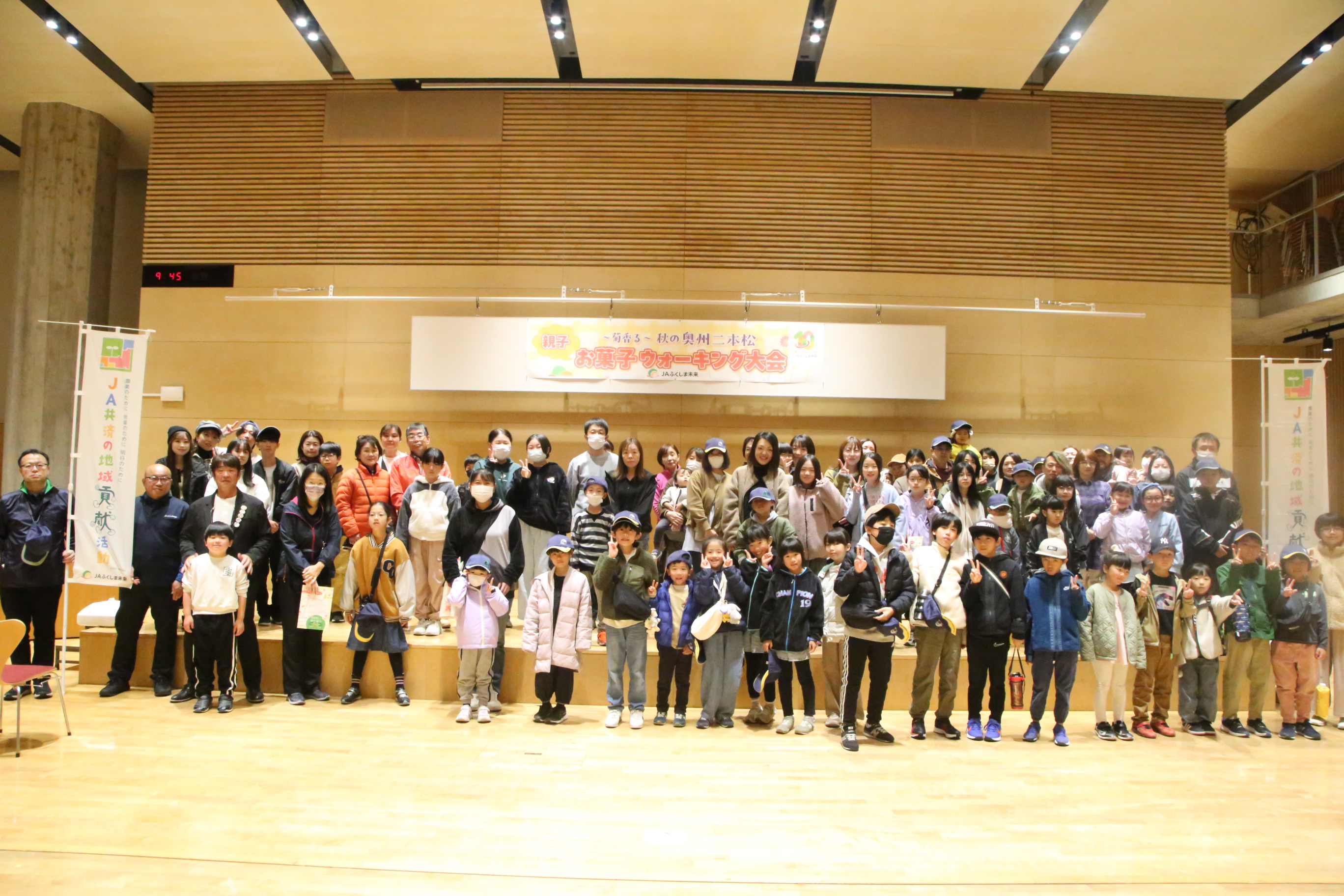 当JA安達地区本部は15日、二本松市内の8店舗を親子で巡る「お菓子ウォーキング大会」を初めて開きました。秋晴れの下、管内の親子約130人が参加し、地元の菓子店を歩いて巡りながら、試食や買い物を楽しみました。