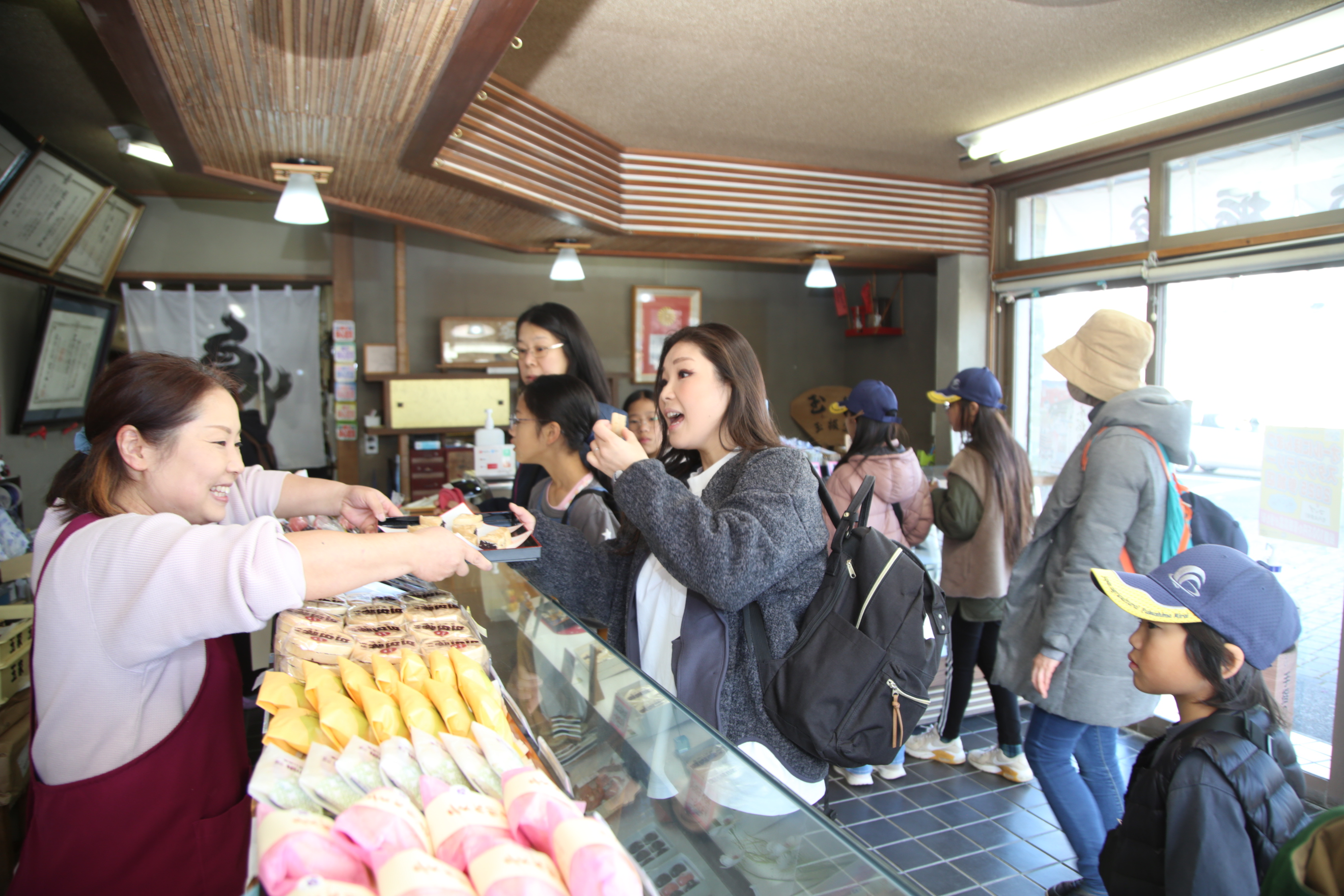 ウォーキングは、二本松市にある福島県男女共生センターで開会式とコース説明を行った後にスタート。JA安達地区の安齋雅由役員代表は「秋らしい爽やかな天気となりました。お菓子を巡りながら二本松市を歩き、楽しんでいただきたい」と参加者に呼びかけました。コース上には、地元の菓子店8店舗が協力し、参加者に試食を提供。親子連れは店ごとに立ち寄り、さまざまな味を楽しみながらお菓子を購入する姿も見られました。参加した児童は「お気に入りのお菓子を見つけた。もっと食べたい」と笑顔を見せました。