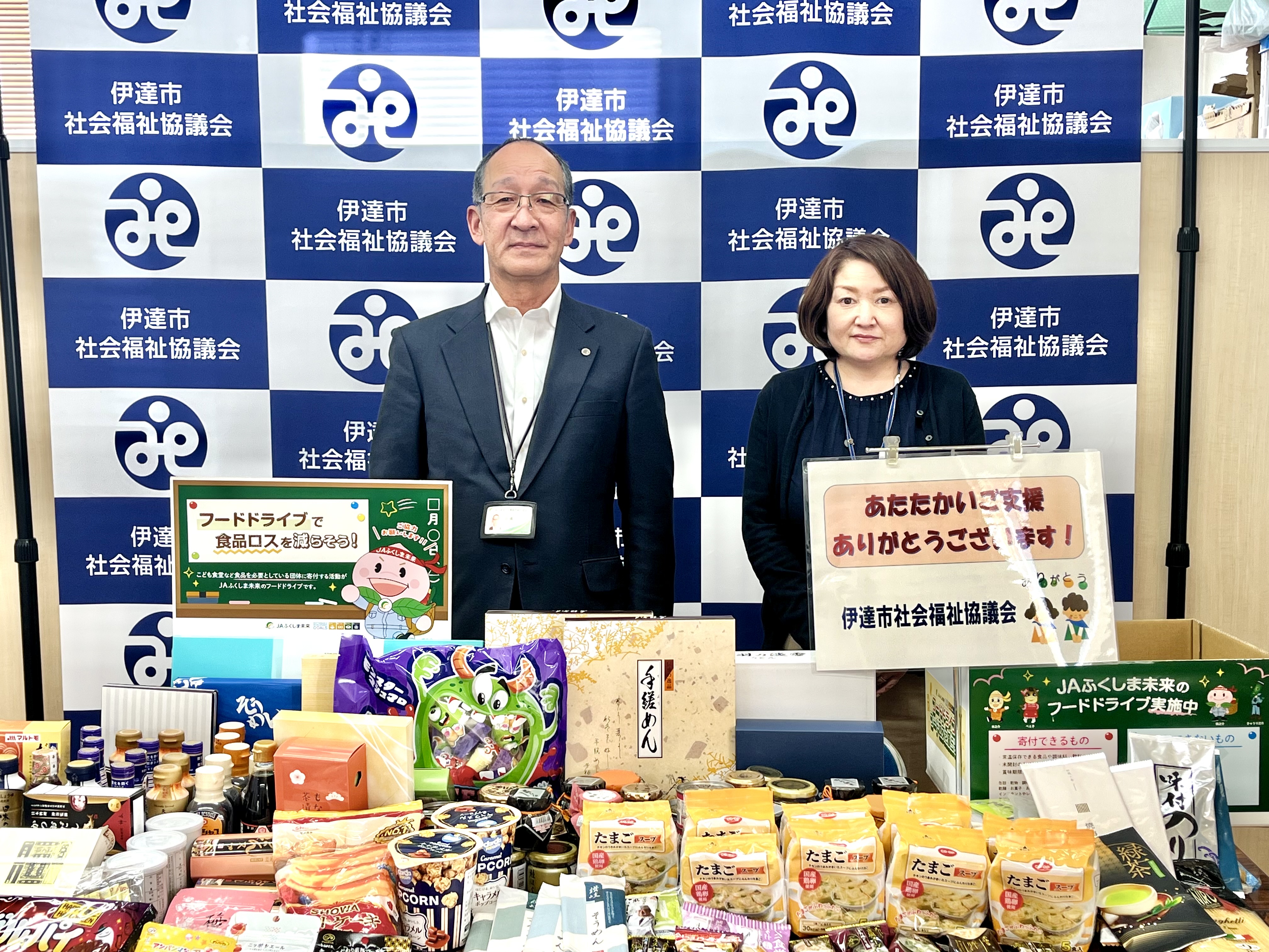 伊達市社会福祉協議会を訪れた高橋弘伊達地区本部長は「イベントで皆さんからご協力いただいたものなので、困っている方々に有効に使ってほしい」と話し、食料品を手渡しました。福祉課の斎藤孝子課長は「たくさんの食料品をいただき大変助かる」と感謝の言葉を述べました。
