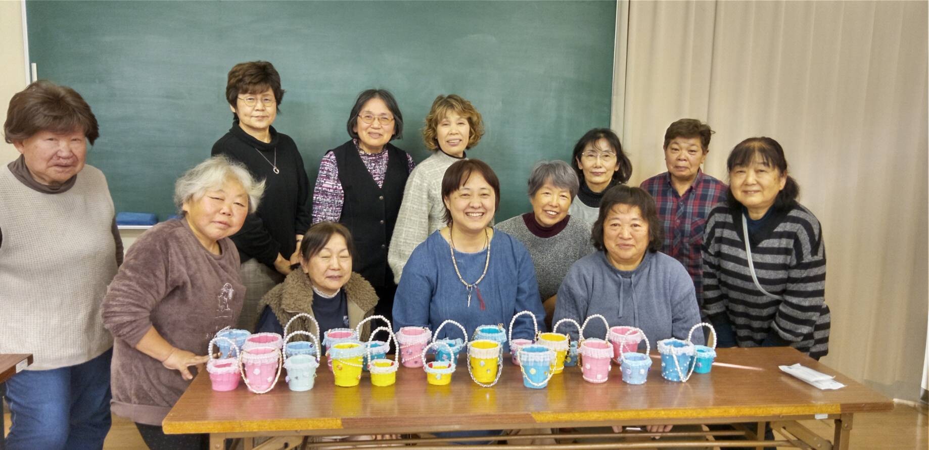 安達地区女性部二本松総合支部杉田支部は12月7日に杉田住民センターでペーパーカップかご作り教室を行いました。地元の方を講師に迎え13名が参加しました。紙コップを可愛らしく色付けて、飾り付けをしてカップかごを作っていきます。手軽に揃う材料で作る事ができるので、参加者からは「自分なりのオリジナルのかごを家でも作って見よう」と話し気分が上がりました。