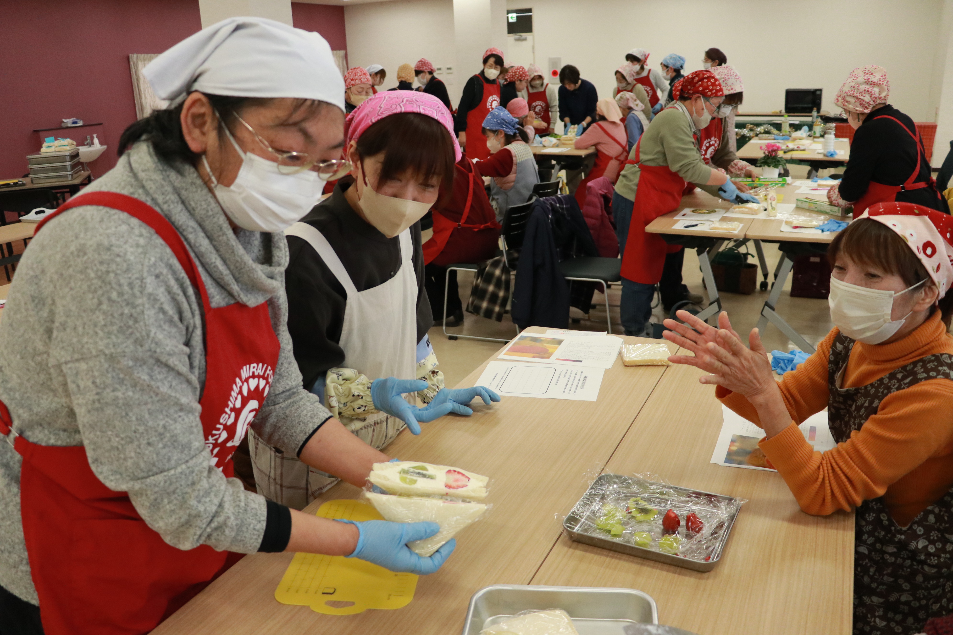 講座は料理研究家の中村美紀さんが地元食材を使った料理「雪降るシーザーサラダ」「ローストビーフ」「フルーツサンド」の3品を調理しました。受講者は「学んだことを違う料理でも活用していきたい」と話しました。同スクールは、毎年参加者が増加。来年度も開催を予定しています。