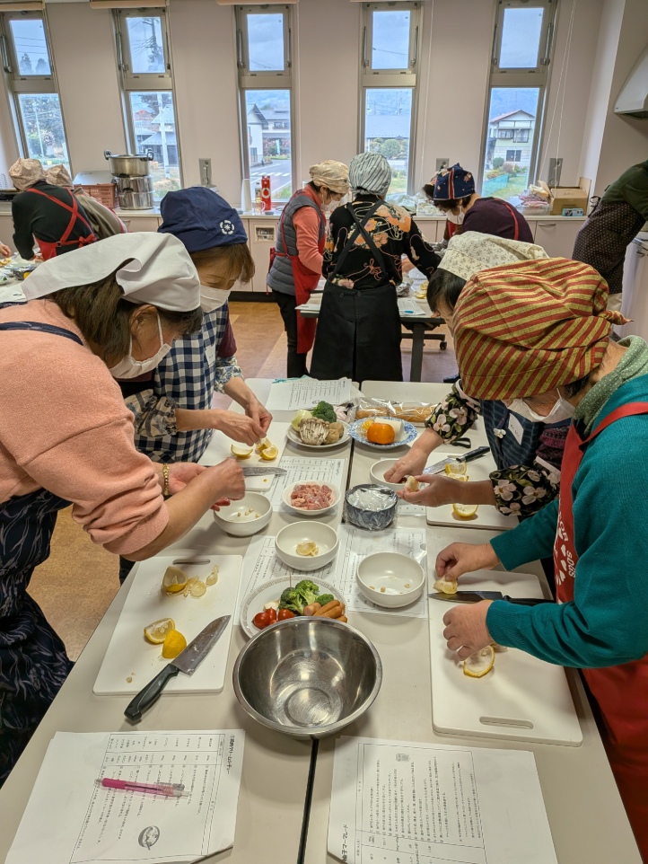 当JA未来福島地区本部は3日、福島市のJA北信支店で第4回アグリカレッジ料理コースを開催し、16名が参加しました。同コースは本年度「地元のもの、旬のものをいただきましょう」をテーマに1年間活動しています。