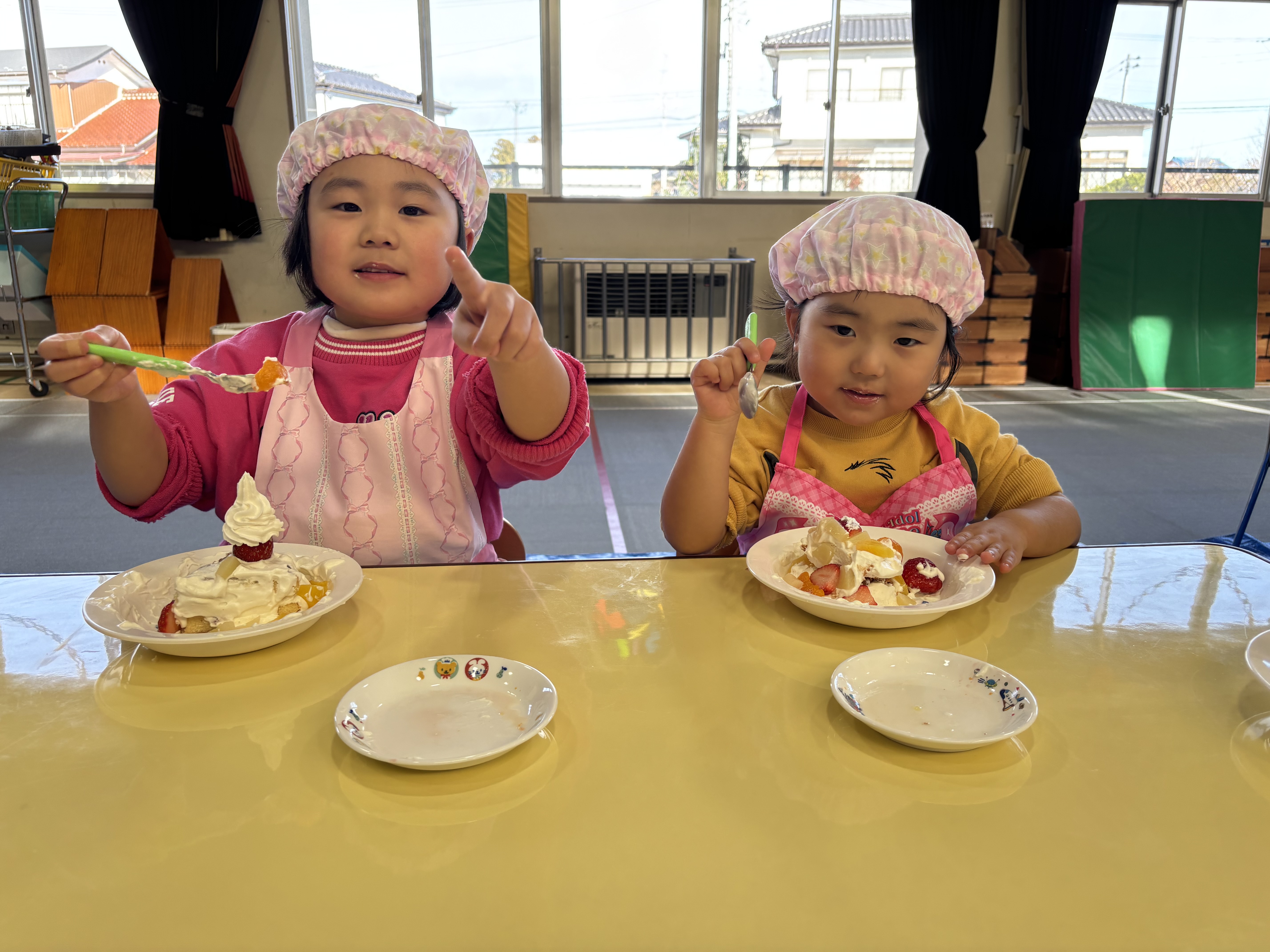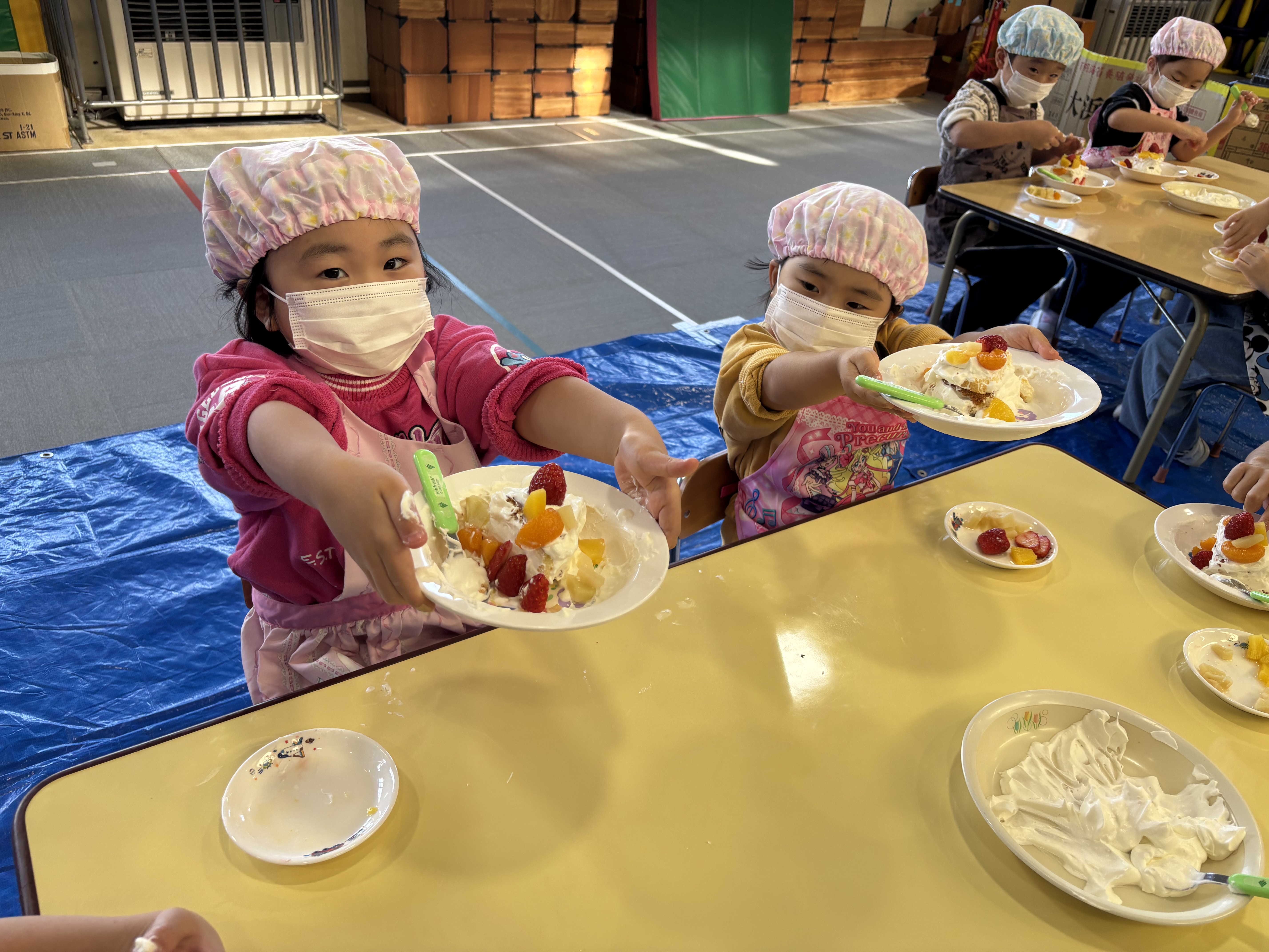 授業では、園児19人が自由にスポンジに生クリームや果物を載せ作った他、JA同地区地域支援課の高田優作職員が管内産の農産物について説明に理解を深め、参加した園児は「楽しかった。おいしくできた」と笑顔で話しました。