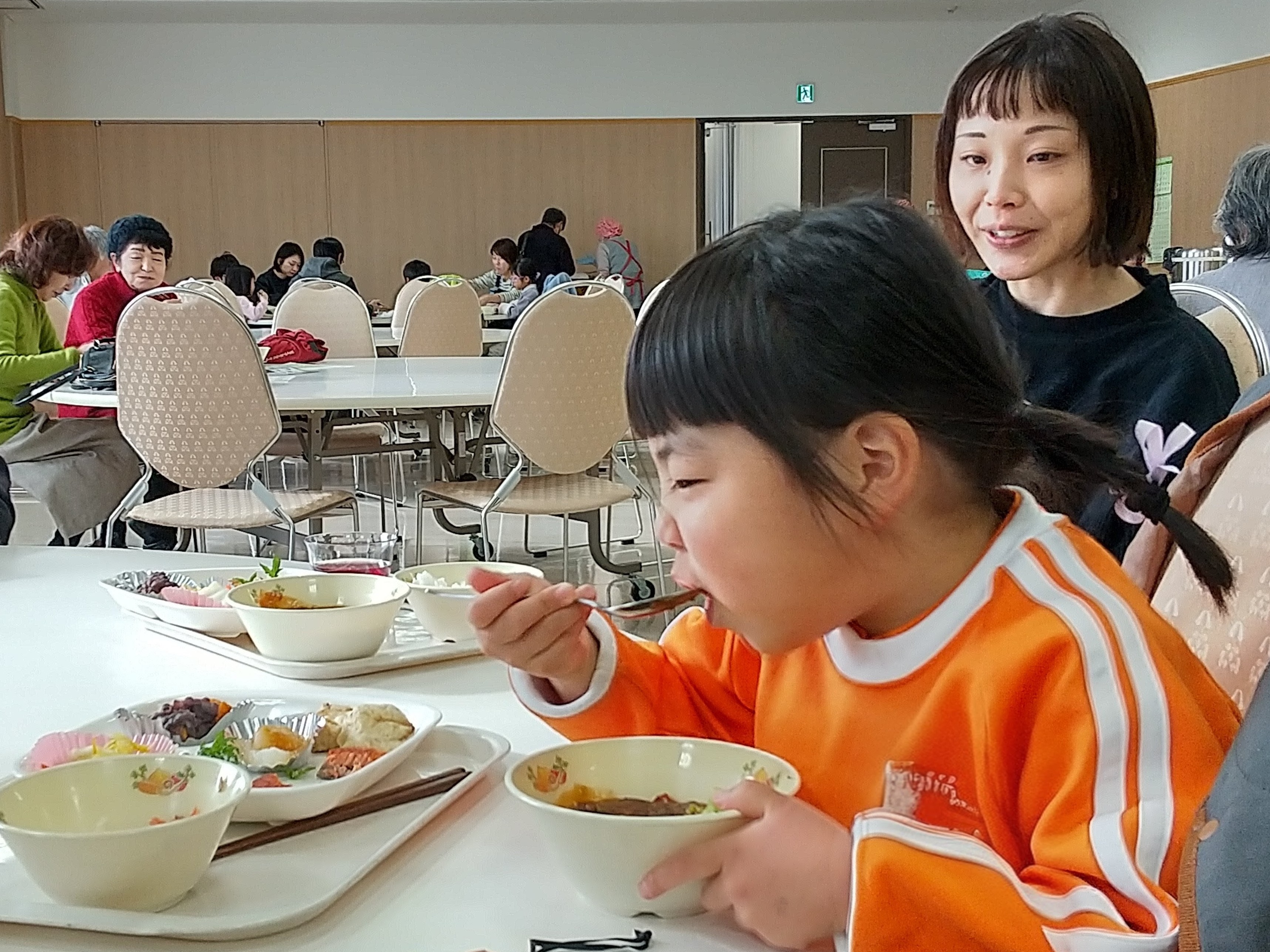 贈呈式は、12日に「よりそい食堂☘りょうぜん」で、19日に「よりそい食堂☘やながわ」で行われ、部会代表者から各食堂の代表者へ地元伊達地区で生まれ育った福島牛のモモ肉が手渡されました。贈呈された福島牛は13日、ビーフシチュー、焼き鮭、さつまいもの天ぷら、冬至カボチャ、大根の柚子味噌かけ、白菜の漬物、ぶどうゼリーを提供し来場者に 来年の干支「午年」にちなみ、折り紙で折った「馬」をプレゼントしました。