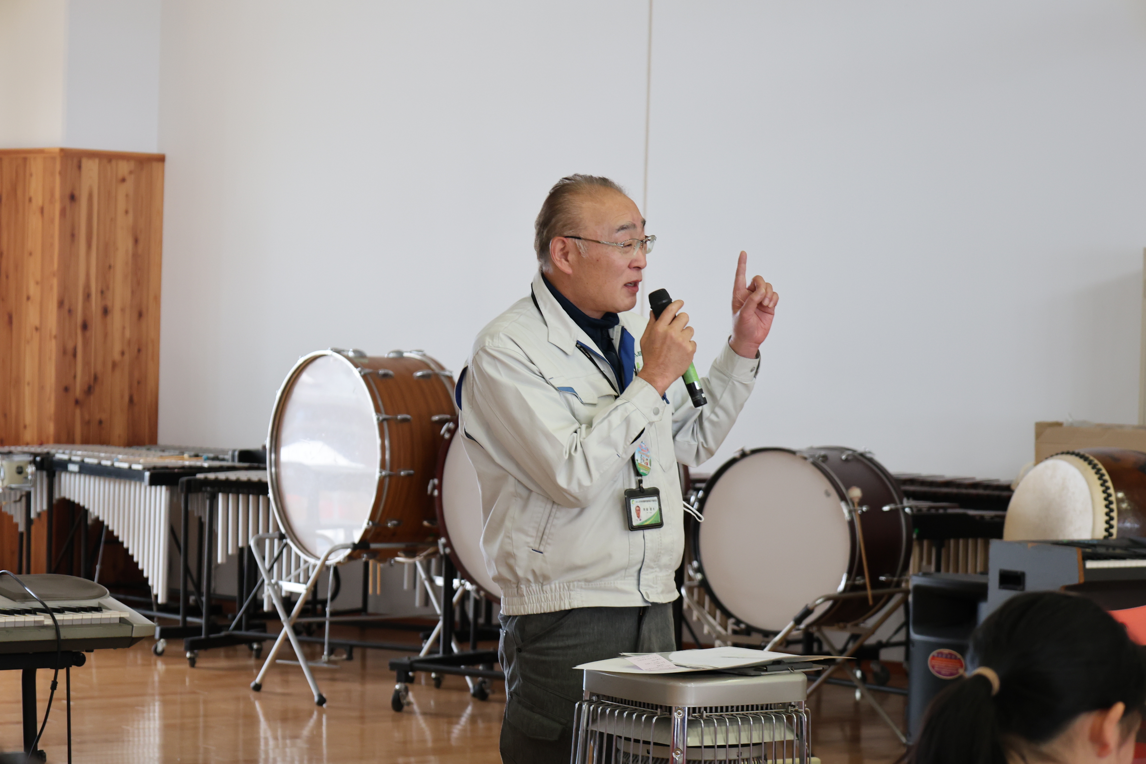 出来上がった餅と一緒に、地元産の野菜を持ち寄って作った豚汁も用意。JA東和資材店の阿部道夫店長による米に関する講話も行われ、児童は食と農の大切さを実感しながら味わいました。