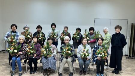 当JA女性部の保原支部、上保原支部、大田支部、柱沢支部は25日と26日、伊達市内で毎年恒例のフラワーアレンジメント教室を開きました。合わせて34人の部員が参加しました。講師には伊達市の生花店「花茂里」の盛藤さんを招きました。参加した部員は、花材のバランスを試行錯誤しながらオリジナルのお正月用アレンジメントを完成させました。