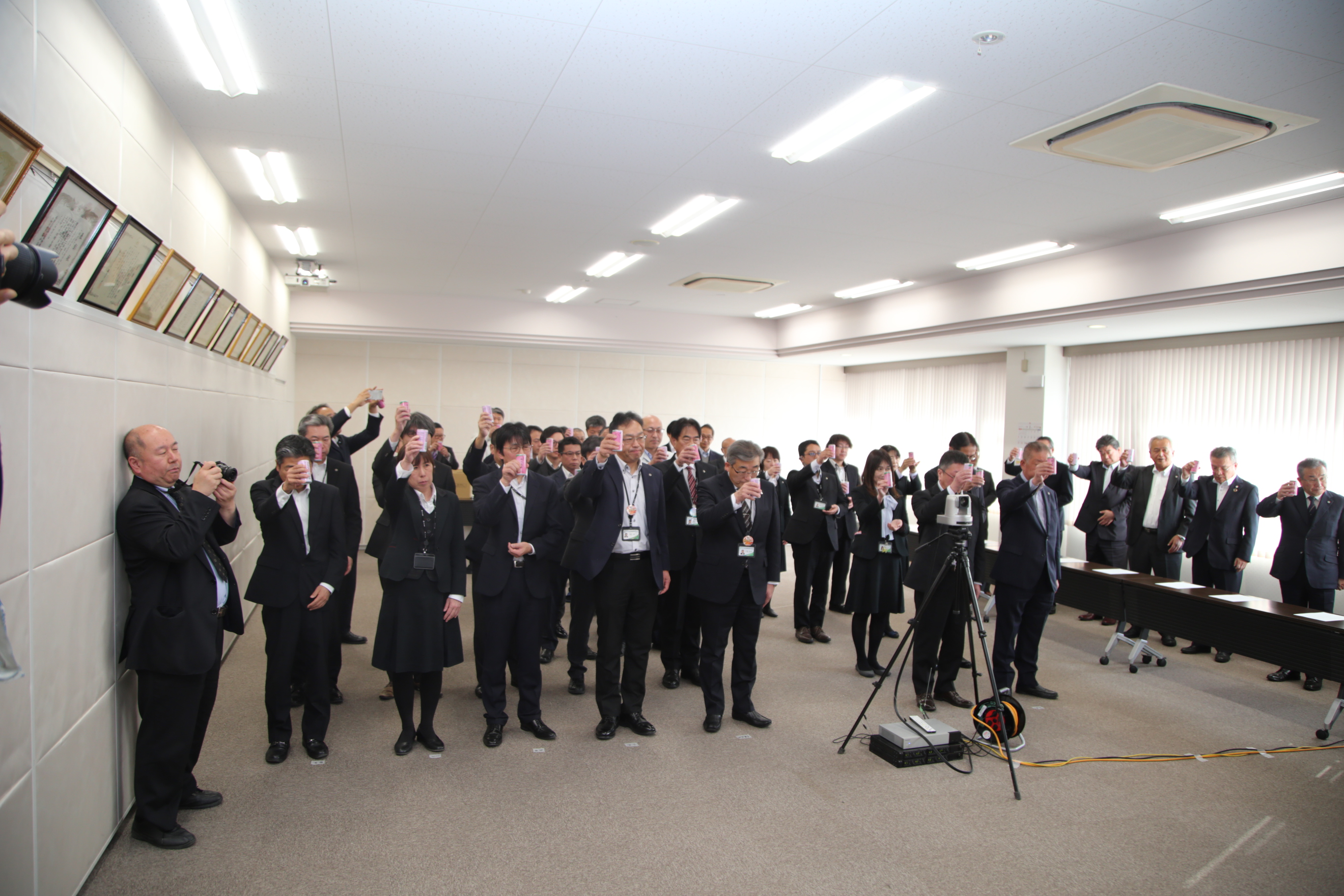 来賓には森まさこ参院議員や金子恵美衆院議員が出席しました。高木正勝専務の掛け声に合わせて、同JA6次化商品「桃の恵み」で乾杯。役職員一丸となり組合員・地域住民のため業務に励むことを誓い、新たにスタートを切りました。