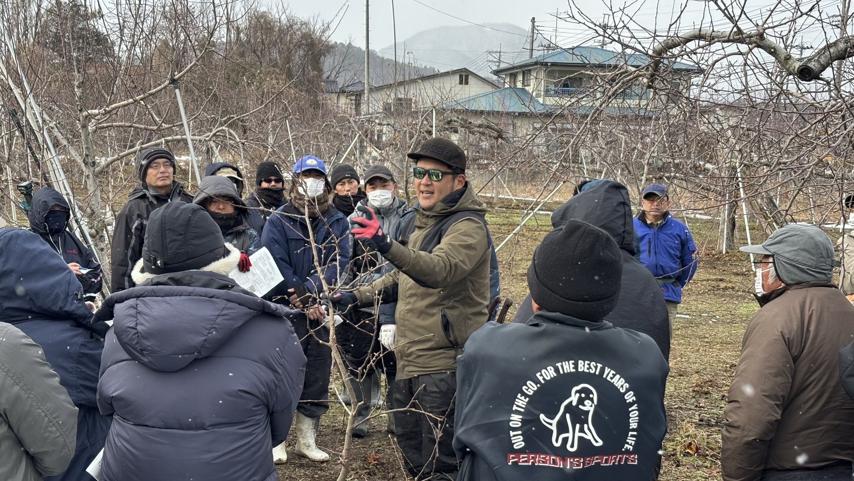 当JA福島地区本部は15日、就農5年以下のリンゴ栽培に新たに取り組む生産者を対象とした剪定指導会を初めて開催し、60人が参加しました。同地区では近年、新たにリンゴ栽培を始める生産者が増加しており、生産者からの要望を受けて今回初めて新規栽培者向けの講習会を実施しました。