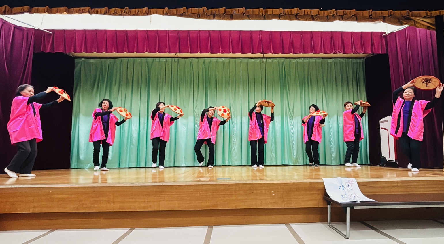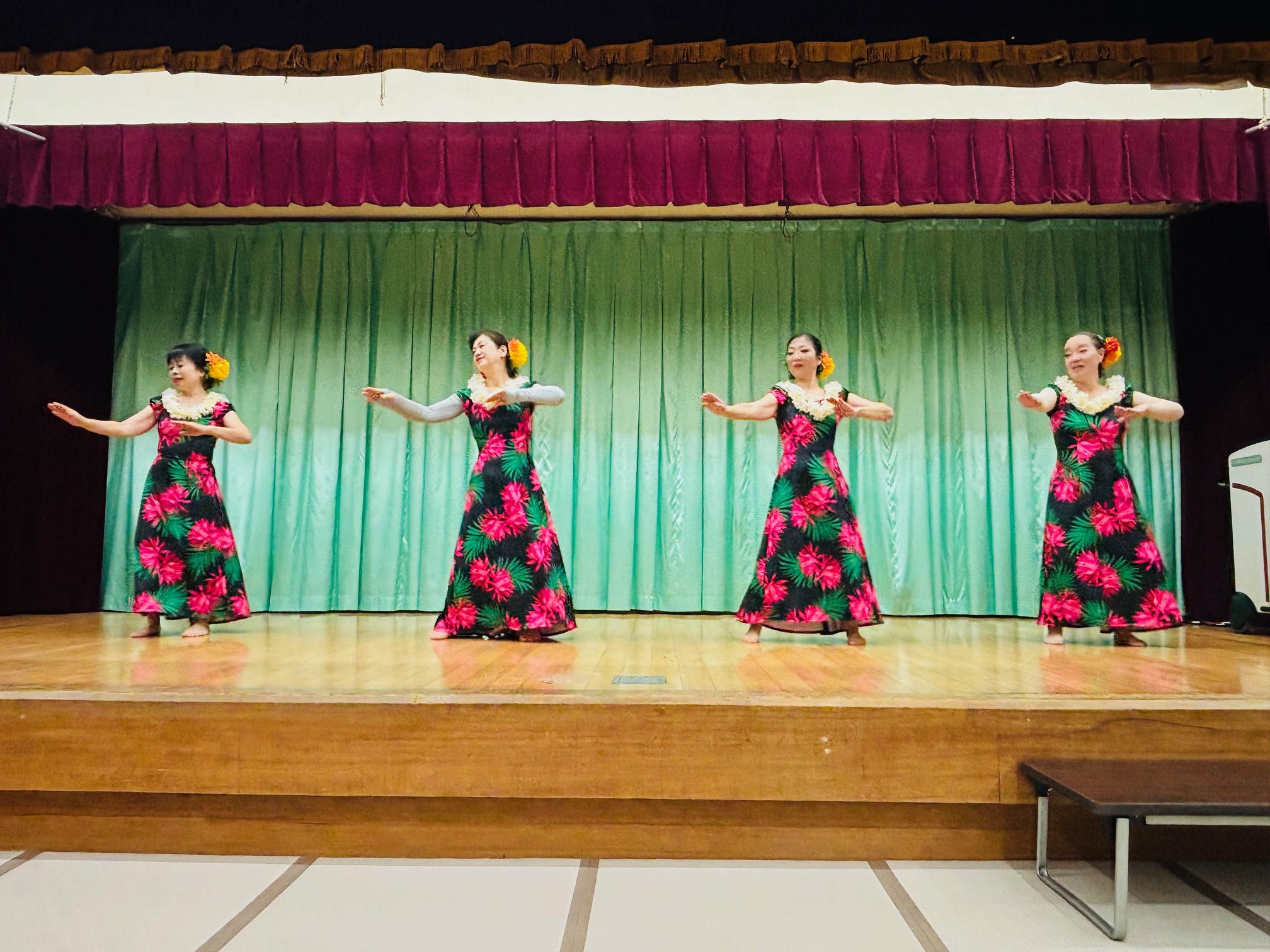 余興では、フラダンスや花笠音頭などの踊りが披露され、「だんな様」に合わせた盆踊りは会場全体を巻き込んで参加者全員で行いました。