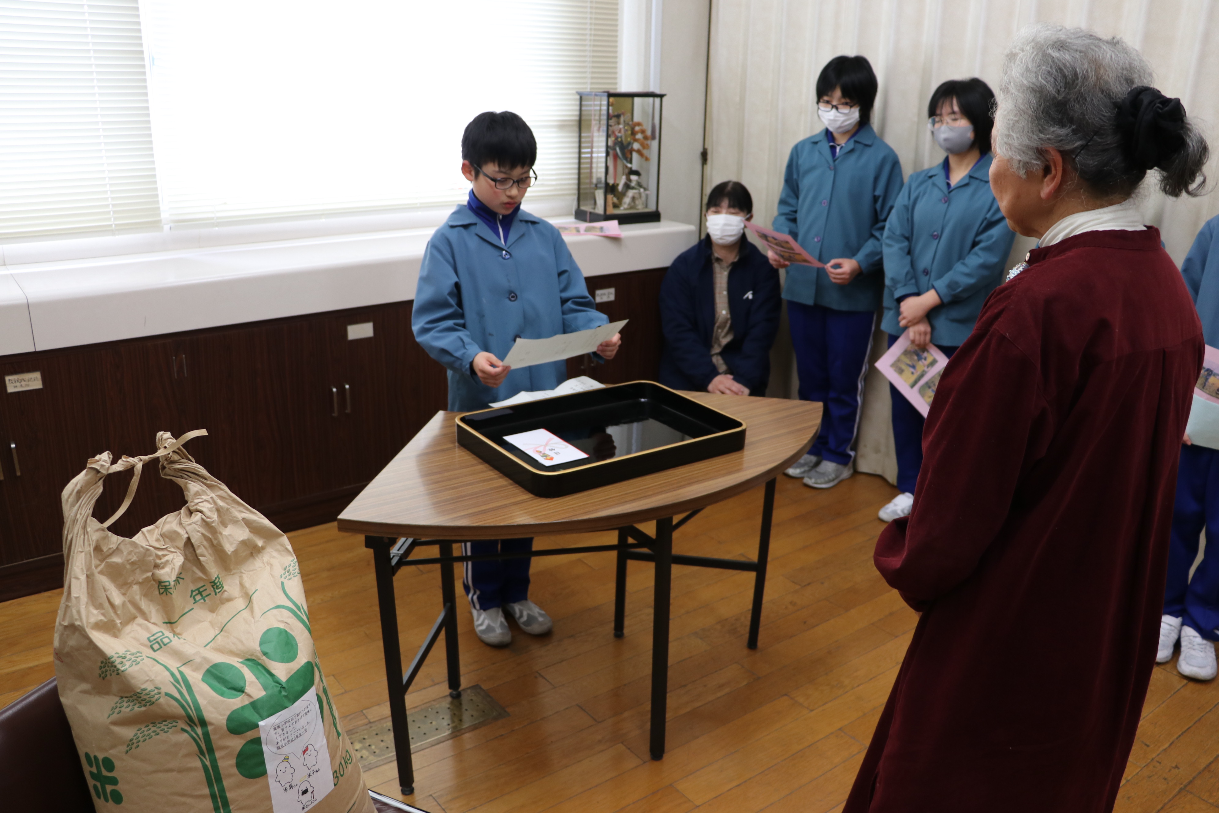 寄贈した児童は「1年間、地域の方々と協力して育てた大切なお米。皆さんでおいしく食べてほしい」と話しました。