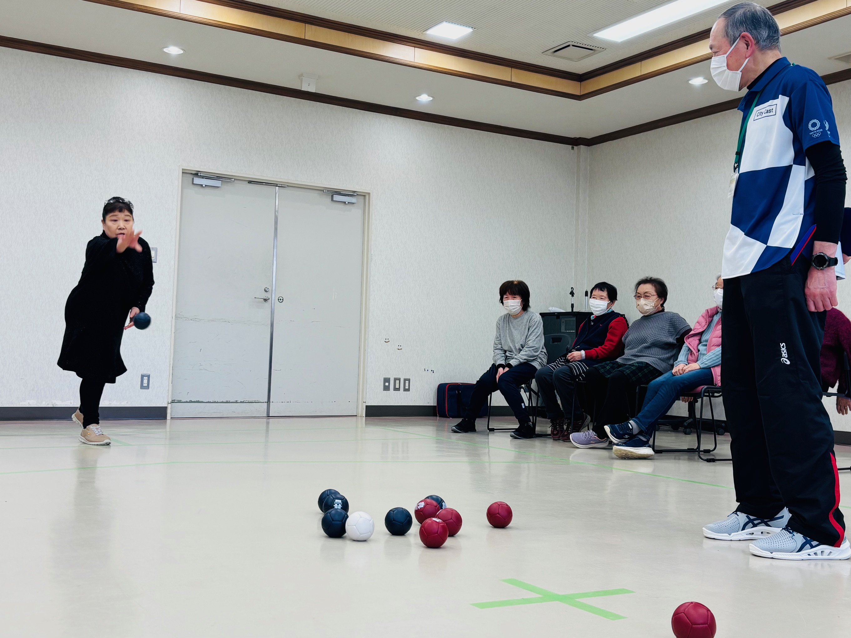 ボッチャは3チームずつ2つのブロックに分かれて、レクリエーションボッチャを行いました。回を重ねるごとに上達しており、作戦を考えながら白熱した試合が繰り広げられました。各ブロックの1位が決勝戦に進み、優勝チームには国嶋サキ子会長から景品が贈られました。